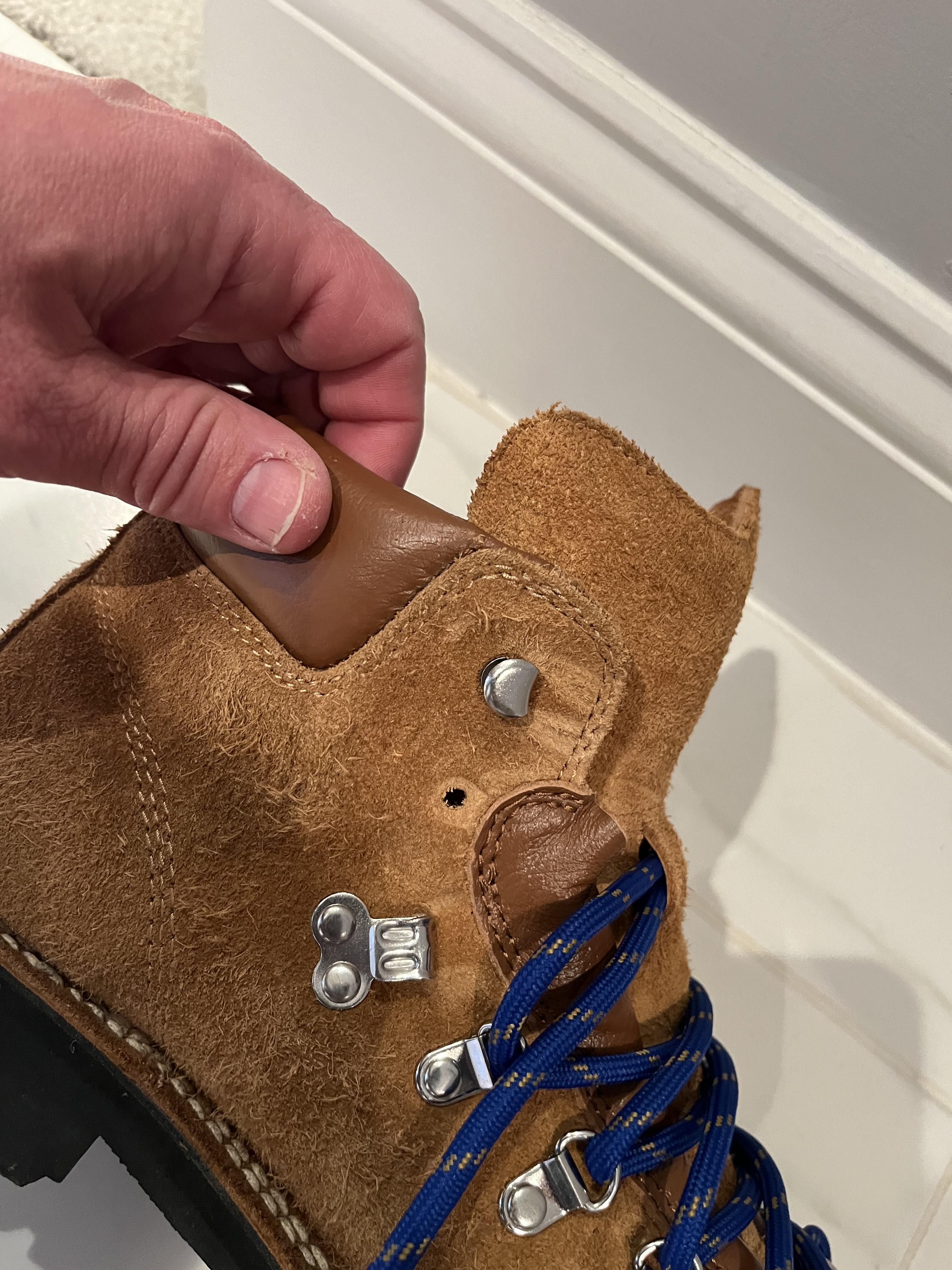 March 18, 2023I was so excited to purchase these boots but unfortunately the second time I wore them (less than 10 days after purchase!). One of the major rivets that holds the laces popped off the boot while I was walking. I heard it bounce on the floor and tried to reattach it but can't be fixed. Very Very disappointing after spending hundreds of $ on a new boot.