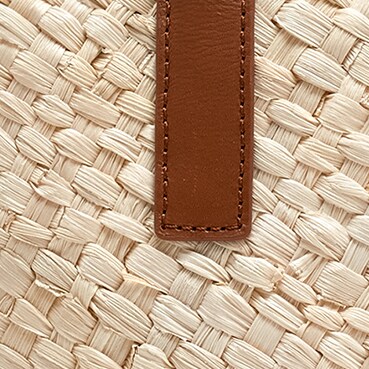 current beach read, this woven tote with charming leather trim is the ideal go-anywhere summer bag.