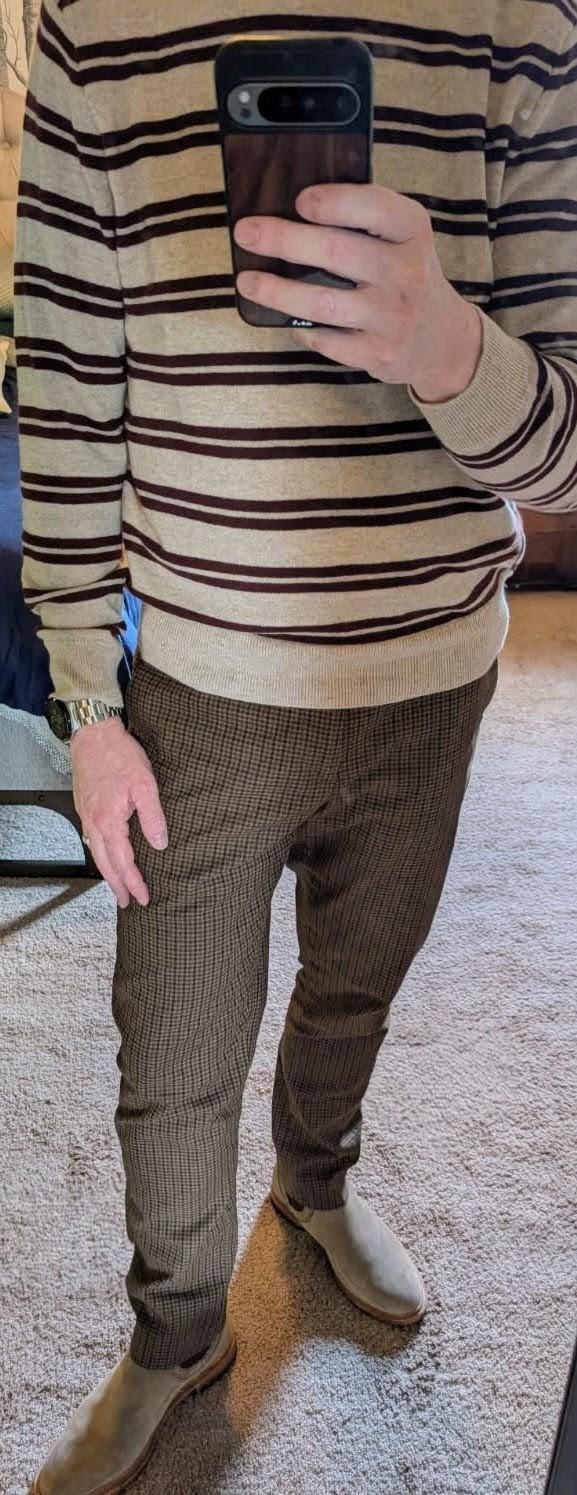 November 20, 2025This cashmere sweater looks and feels great. I'm 6'2" and weigh roughly 172 lbs - M fits perfectly. It can be dressed up or down. I'm glad I purchased this and would definitely recommend.