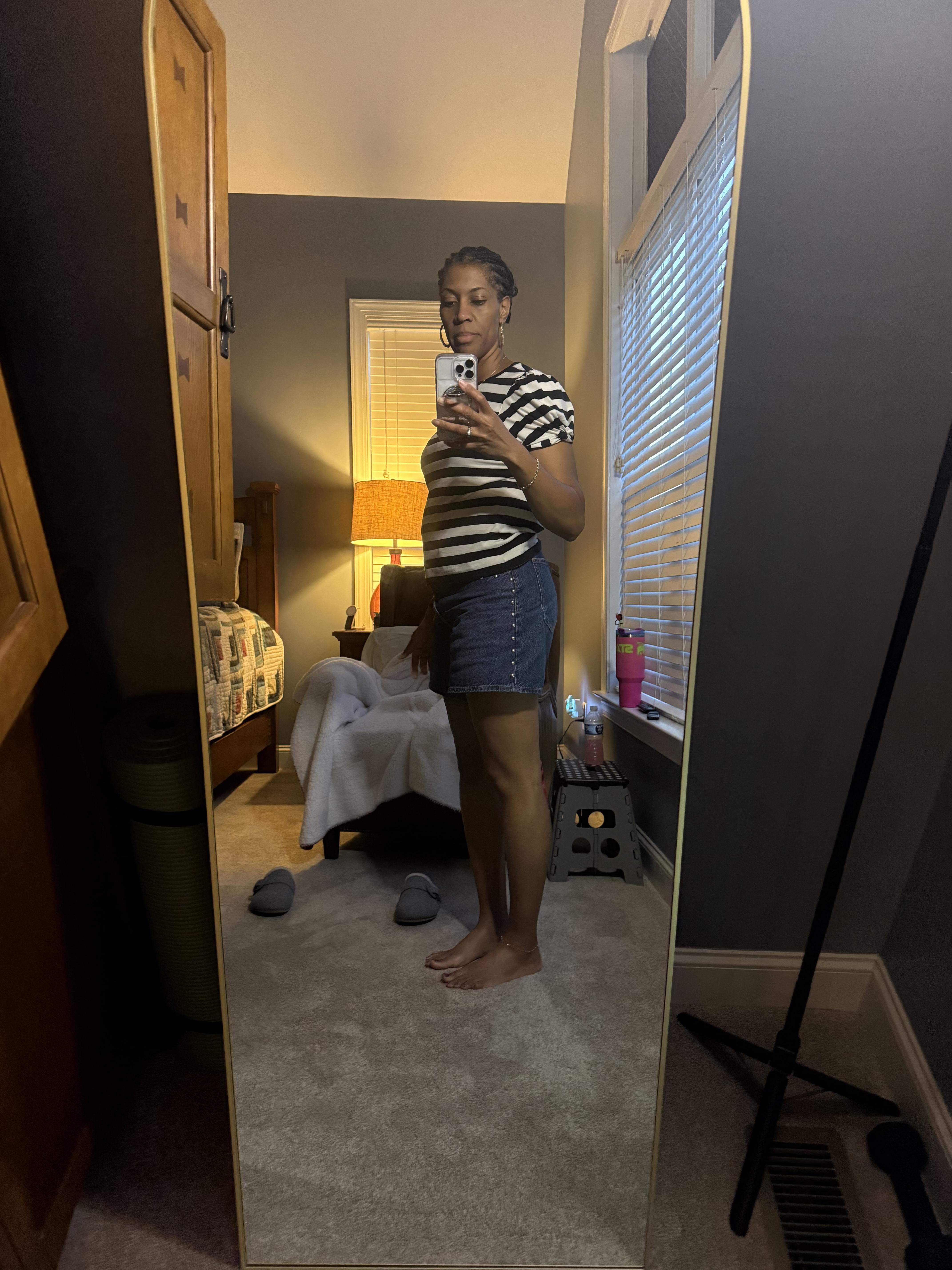 June 16, 2025Cute puff sleeve stripe T shirt, but there’s a noticeable irregularity in the sleeve stitching. I can’t return because it was on sale.