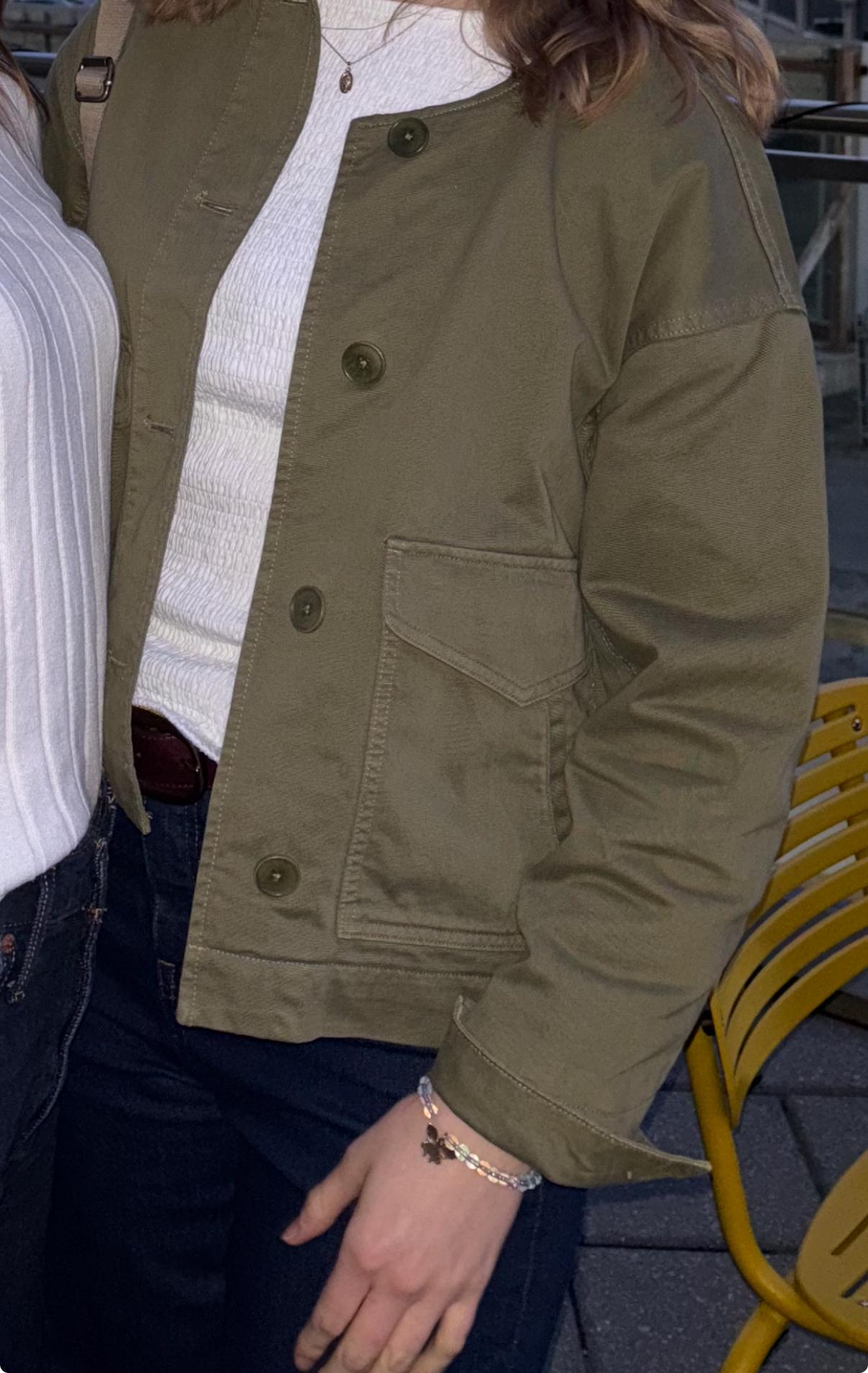 March 22, 2026This is a great little jacket that is a nice departure from the barn jacket and lady jacket silhouette. It has a more relaxed look and feel to it plus I love a collarless jacket or button down shirt. It runs big . I tried a medium and it was too boxy and oversized unless you want to layer a sweater underneath. I chose a small and it's perfect to wear in place of a blazer or denim jacket.