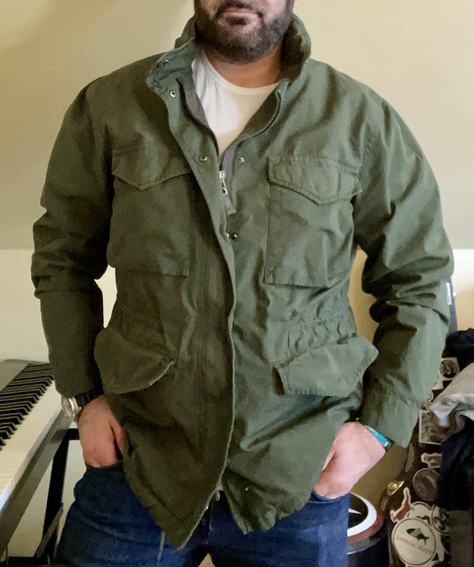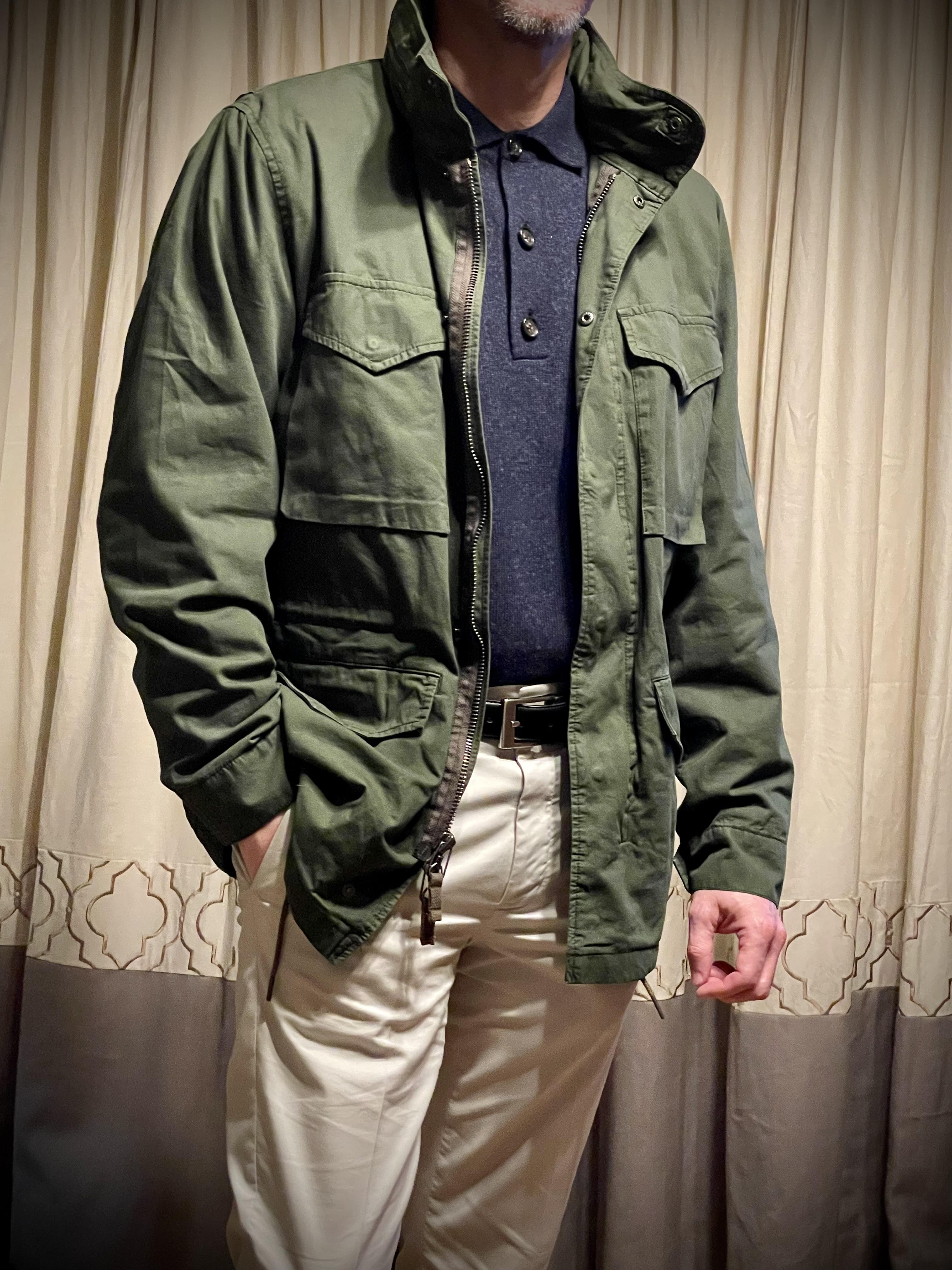 January 10, 2022I purchased the green jacket; the color is a bit darker in person which I’m happy with. The fit is accurate; I ordered the medium and this wears easy. The look is great; definitely a military vibe. But the thing is seriously comfortable; I thought it might be stiff, heavy, and need breaking in. Nope: it was soft, easily flexible, and light enough right away. I think this will be great for transitional weather. My one, my only gripe is that the zipper is temperamental. I don’t find it easy, and considering how spot-on the rest of the jacket design is, this is a head-scratcher. But overall I love the jacket and enjoy wearing it.