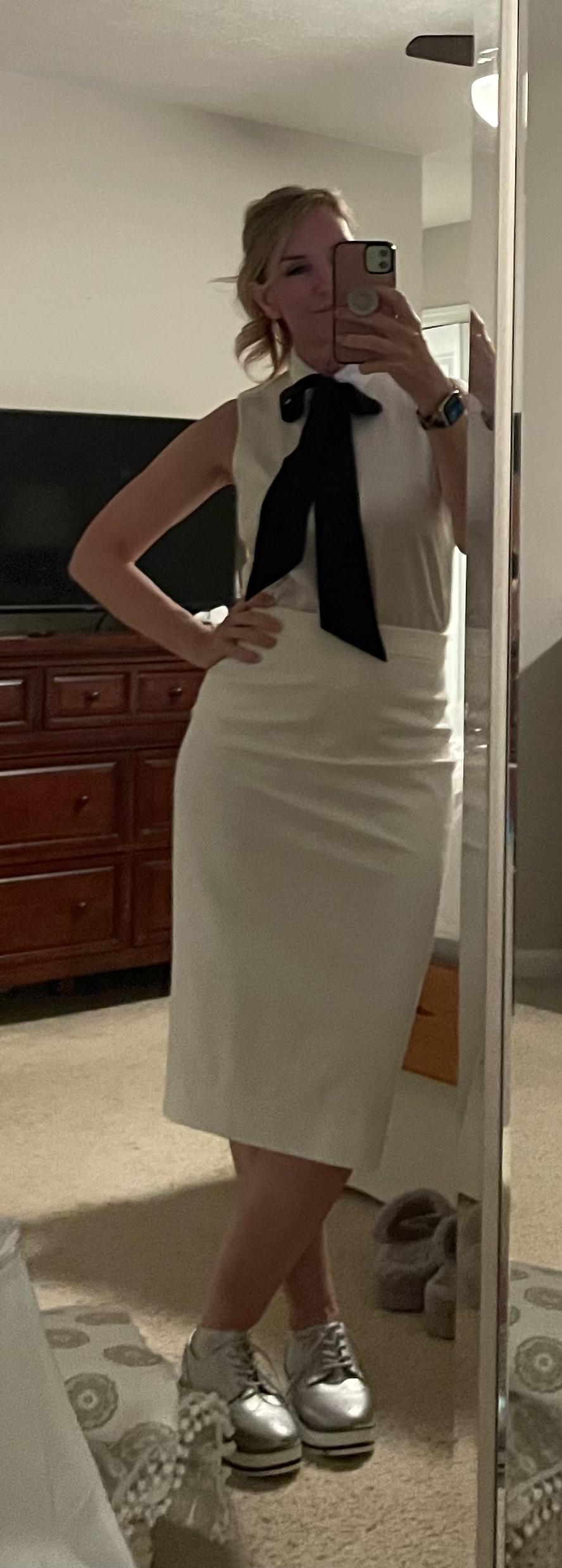 February 25, 2023I was SO EXCITED to find the blouse of my dreams to wear under cardigans and blazers. Unfortunately when it arrived the bow was missing (the best part of this blouse) and now it is sold out. I am complaining disappointed in J. crew for this and will be returning because I did not pay this much for a plain silk blouse. Otherwise I would have given 5 stars, fits perfectly!!