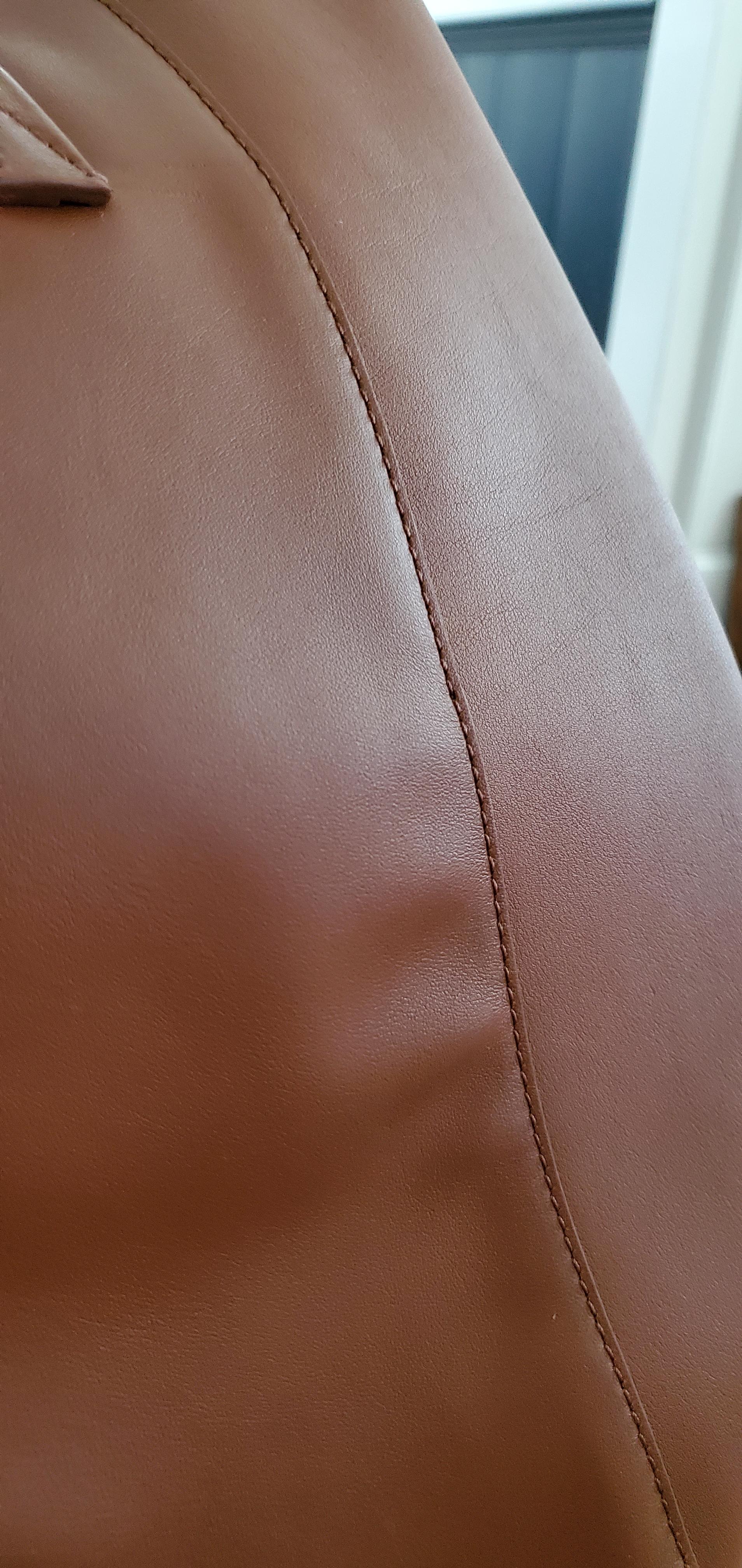 August 10, 2021Well priced unlined leather bag in attractive brown cinnamon/ nutmeg hue. Seems sturdy as well as refined;thinner straps and a bonus zip leather pouch for accessories! Not so voluminous as to overwhelm a smaller person, and not heavy or stiff. Indeed, it is a floppy and thinnish leather bag, but appears well sewn. Def worth the clearance price in a fine leather! Noted here is a slightly irregular seam, but still a quality piece.