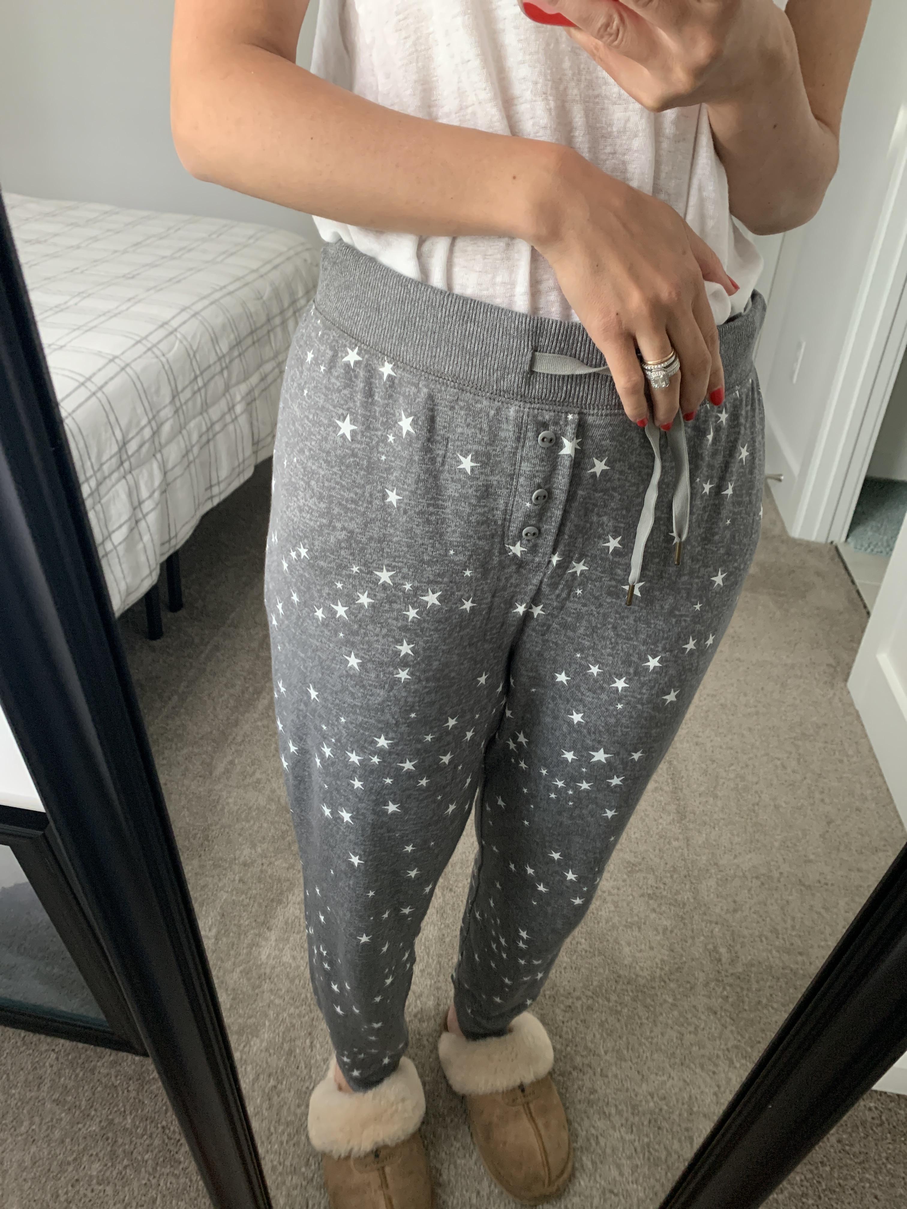 Many customers love the cute star print and the super comfortable, relaxed feel of these pants – perfect for loungewear and casual at-home outfits. The design and styling are widely appreciated as versatile and great for pairing with everyday looks. A number of customers recommended ordering a size down, noting that the fit tends to run a bit large for a more tailored feel. Overall, the pants are seen as a fun and cozy option for a laid-back vibe.