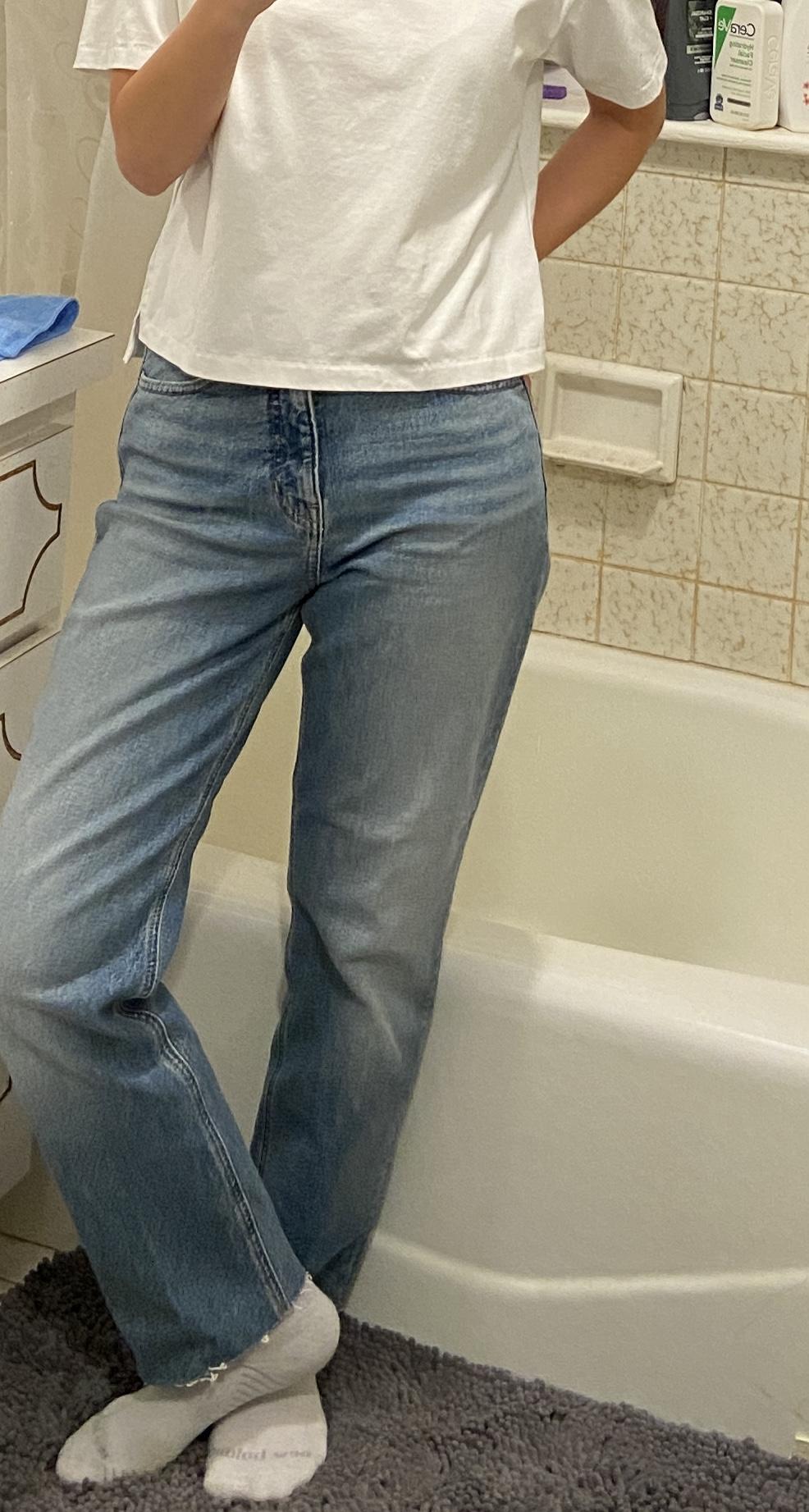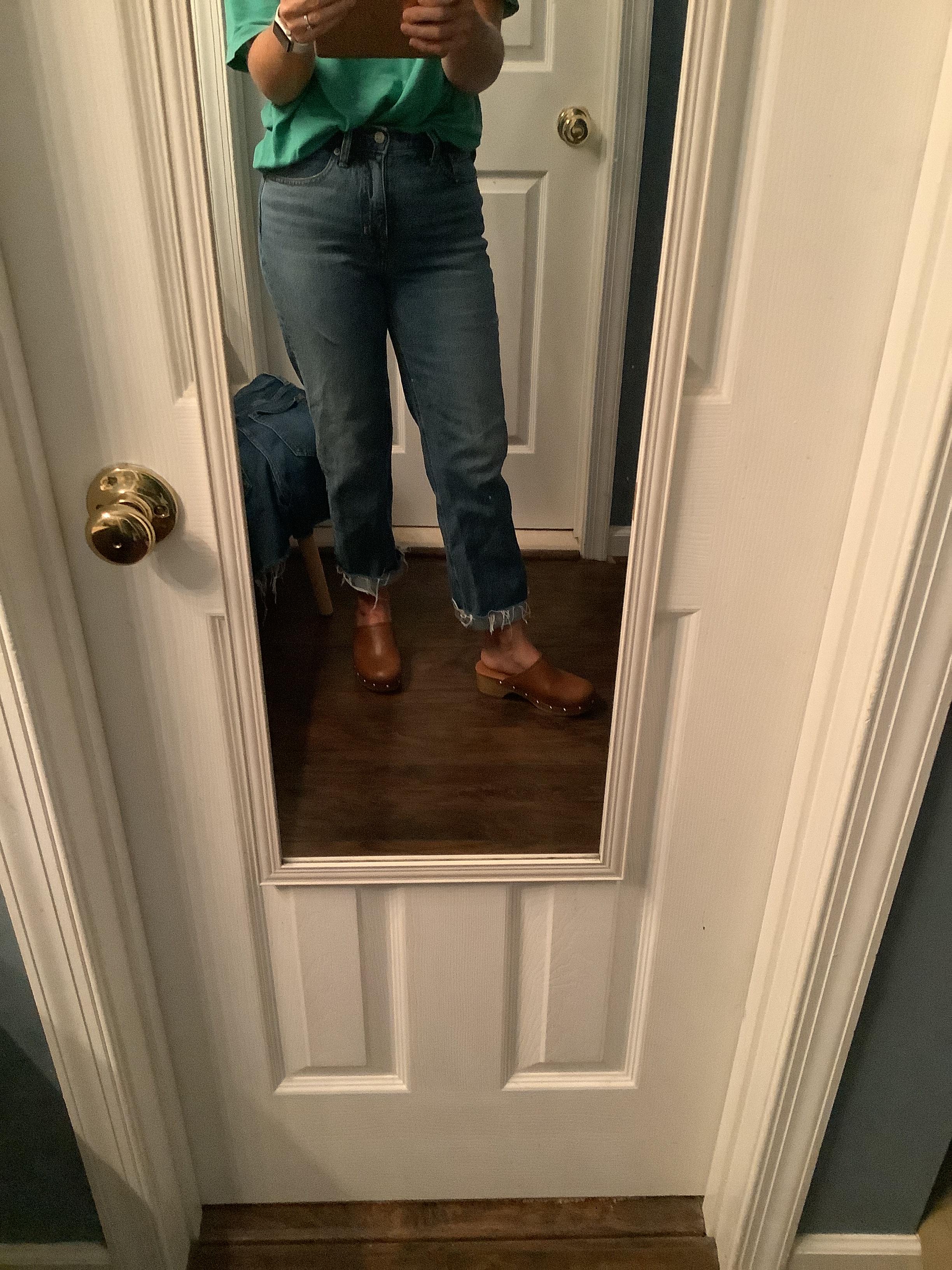 September 13, 2022I tried these on not thinking I would like them, really surprised by these. The fit is slightly big I went down to a 26, I am 129lbs and 5’2 for ref. The leg hits right at my ankle, I have been rolling the hem once and wearing with clogs. The wash is nice and soft with a medium weight, wearing now in MD weather but will be perfect thru fall and winter. The width of the leg is slightly relaxed similar to a boyfriend style but I really like the look and is on point with the current trend.