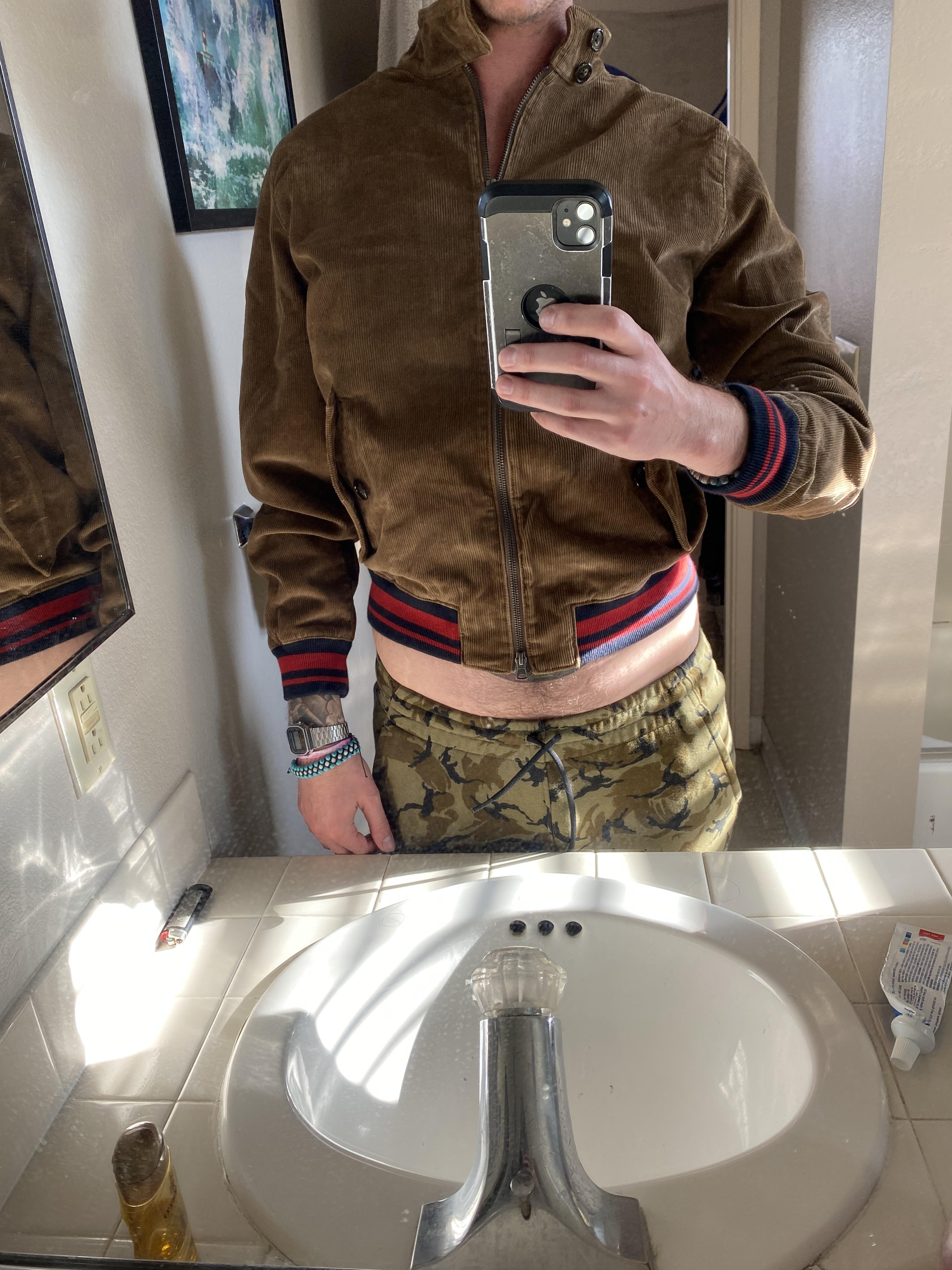 October 8, 2022Never seen a jacket like this. Was super juiced to have a corduroy bomber jacket. To be fair, I am 6’2 +. However I am rather lean, I wear a small or medium t shirt comfortably. I swim in most medium jackets tbh. I ordered a size medium jacket, and when standing up straight I was horrified to see the hem of this jacket at my navel. This jacket is simply not made for anyone taller than 5’5. Super bummer that I had to return it. I would have exchanged it for a size large, but I was too afraid it too would be too short. Huge bummer, I wanted to love it