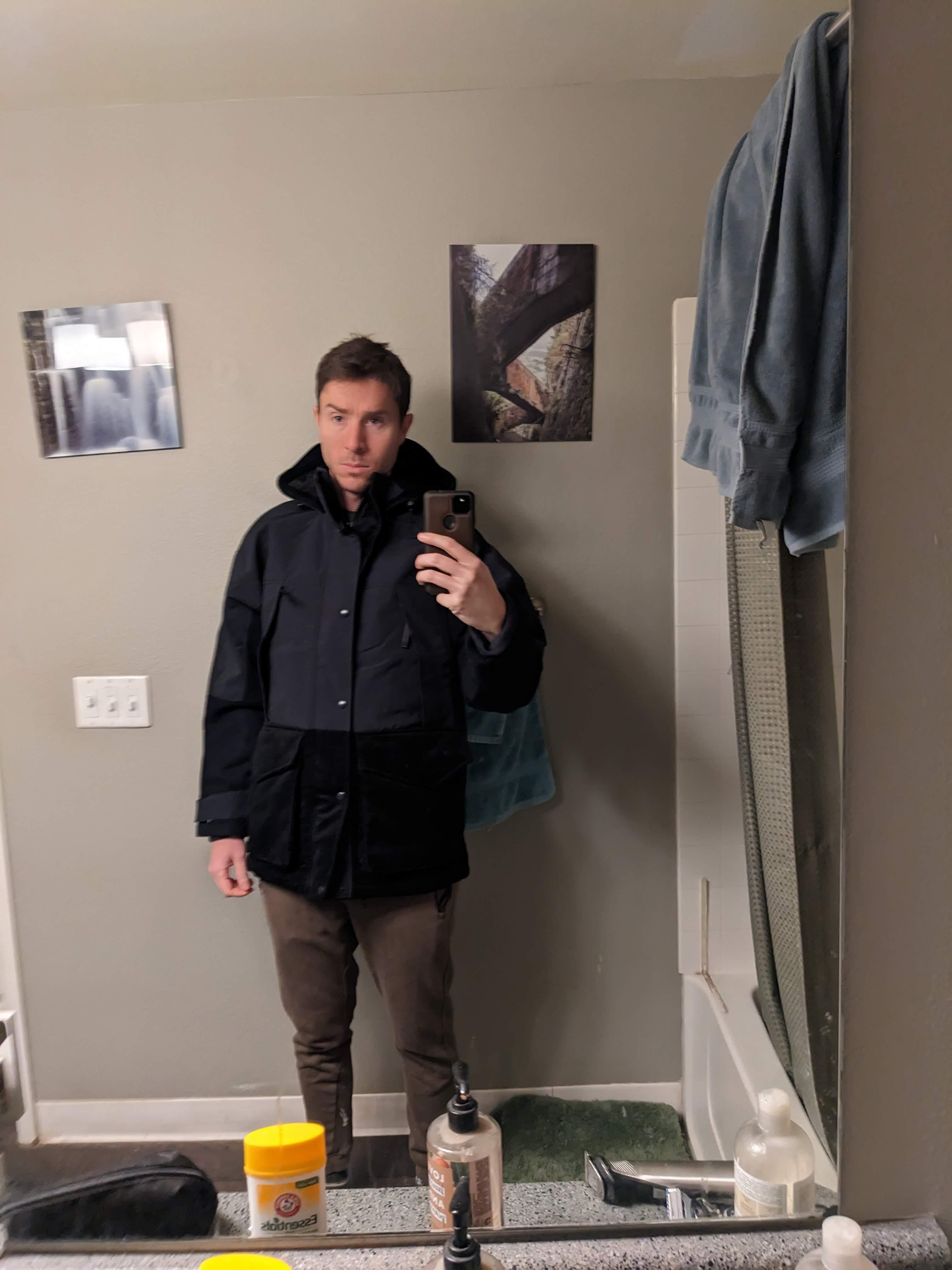 January 15, 2023This jacket is of excellent quality one of a kind and plenty of pockets. It's designed to be hefty not overly large like some reviews have stated. I am still discovering new cool details the mixture of fabrics, the hood is warm covers from rain and cold but doesn't block your vision, the mixture of Snaps zippers and velcro. And pockets pockets pockets we love it ! Did I mention how great it looks !