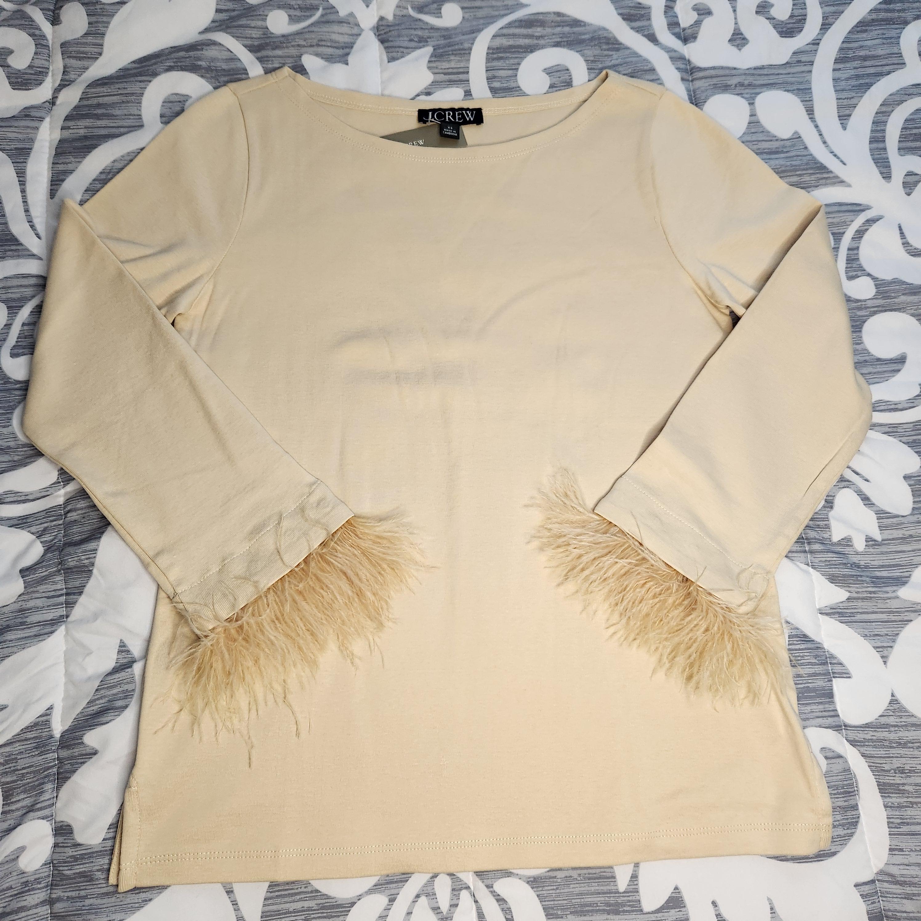 May 17, 2024Perfect "T" with a little flair. It is not fully long-sleeved; it is a little cropped before your wrists, around where your watch fits. Love that you can remove the feathers to wash.