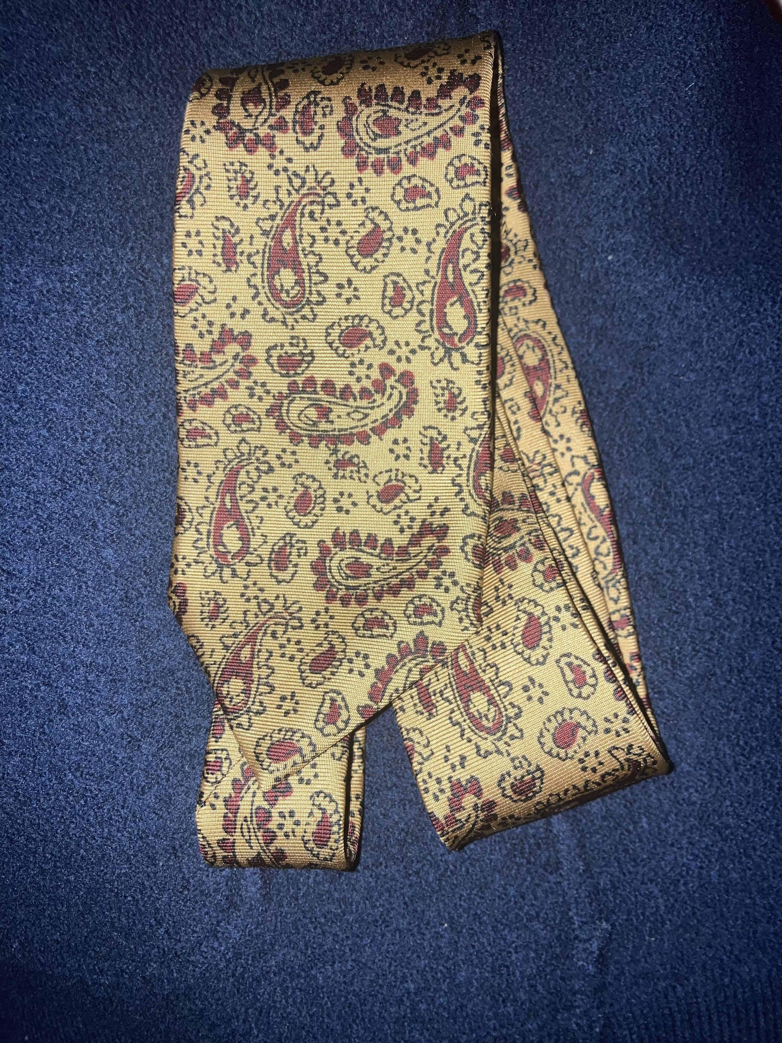 October 25, 2022Tie pictured is a lot more yellow-gold than actual tie in person. Actual tie is a darker golden brown.