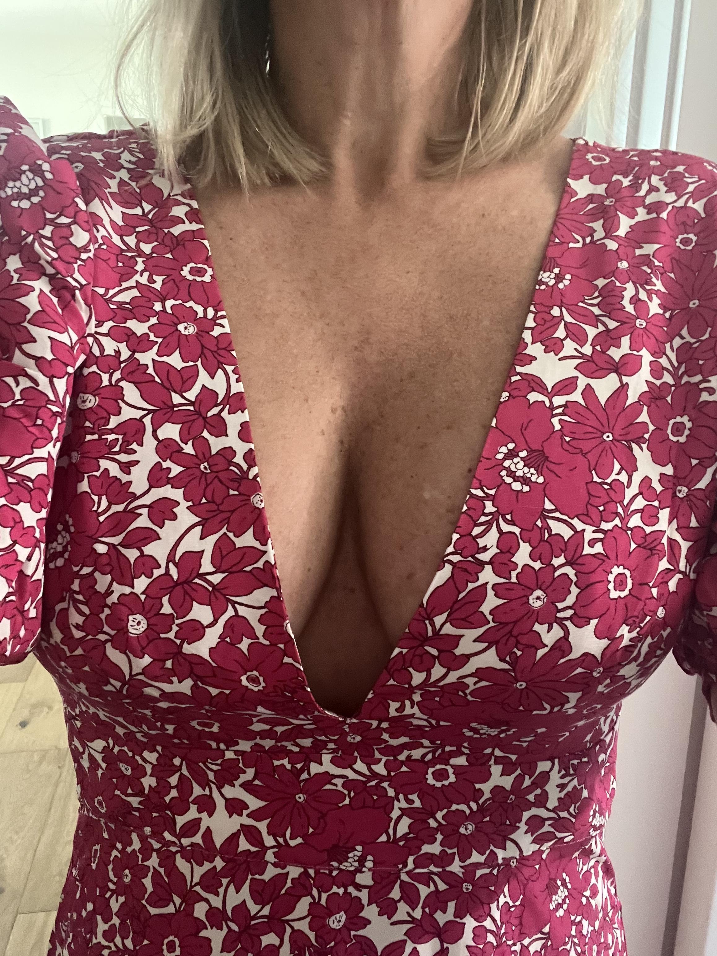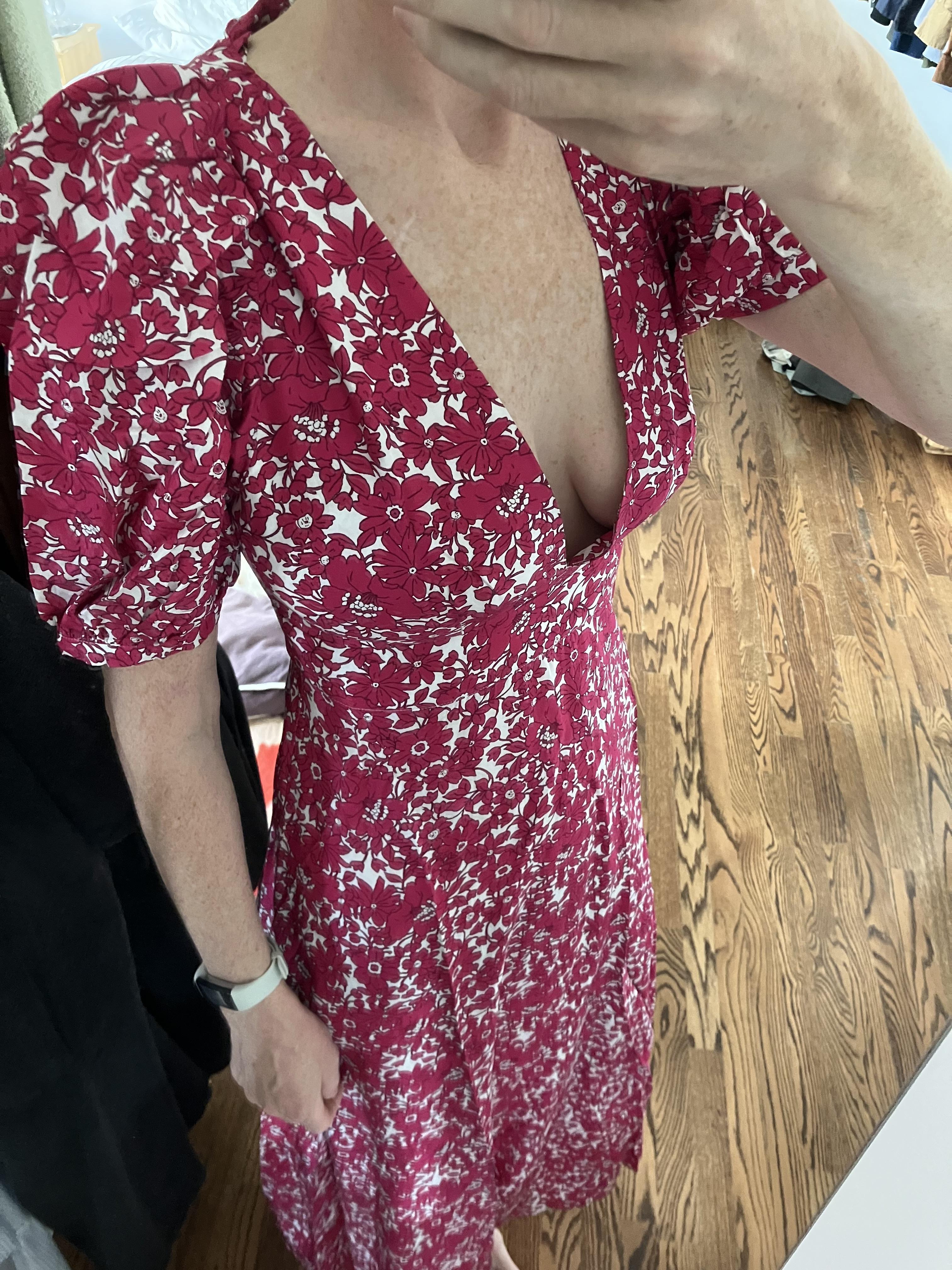 May 4, 2023I really appreciate the reviews that folks leave and I thought I’d add my thoughts because I am pleased with this dress. It’s true: the neck is very low. And the model photos don’t make this clear, which yes is annoying. But it works for me, and with a little boob tape there would be no worry about exposure. I have a 32F chest, and I don’t wear a bra with this dress. The structure of the cups are supportive. If you have a smaller chest I can see how this would not work without a tailor taking in the chest fabric. The print is feminine and gorgeous and I love the drape of the fabric. I’m 5’11 and it hits at my ankle. The puff sleeves are fun too and well done!