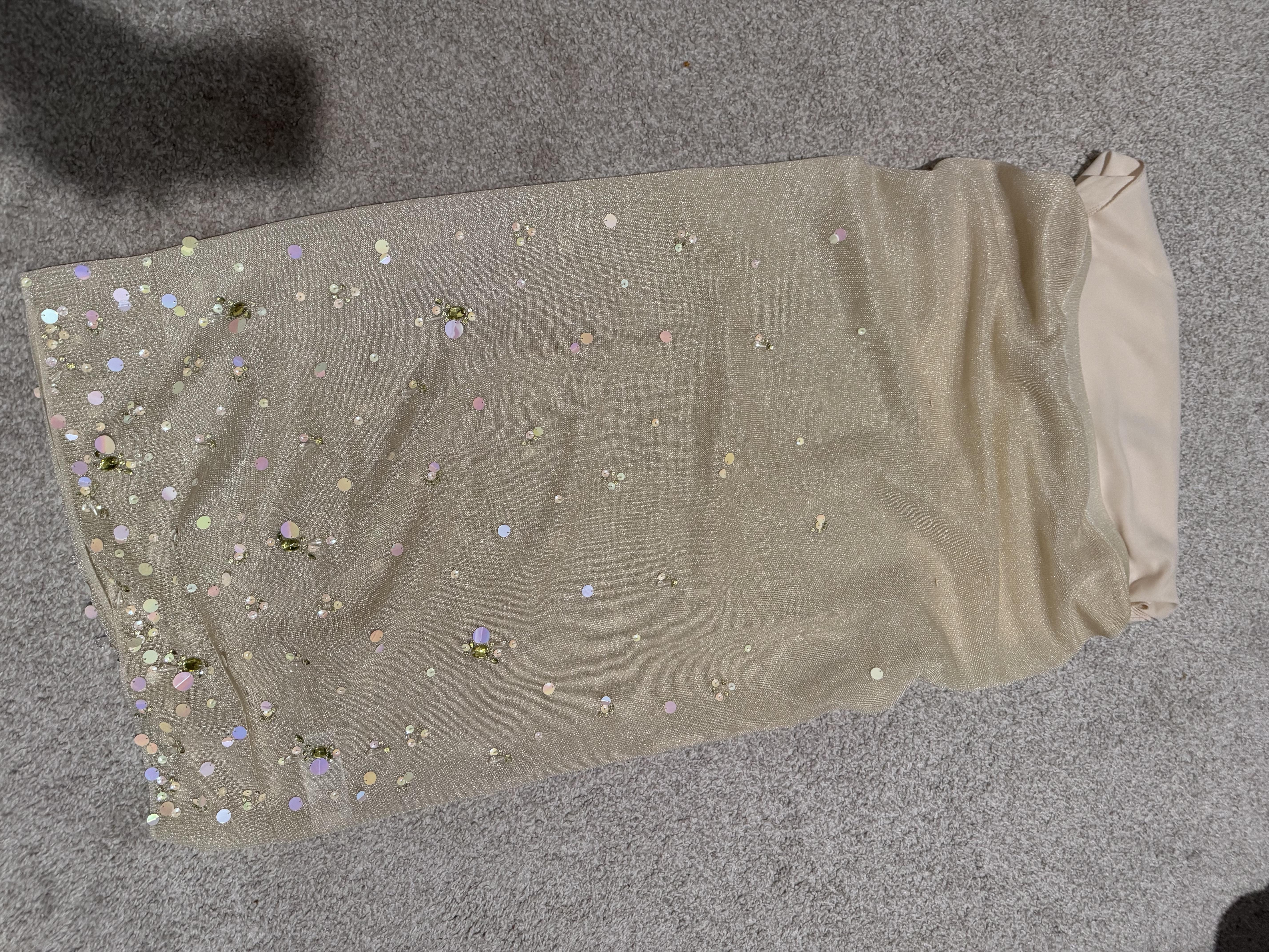 A sparkling style designed with cascading sequin details. It comes with a sheer slip layer and a shorter, fitted skirt underneath that's made from soft, sweater material. Plus, it has a stretchy waistband for the perfect fit every time.
