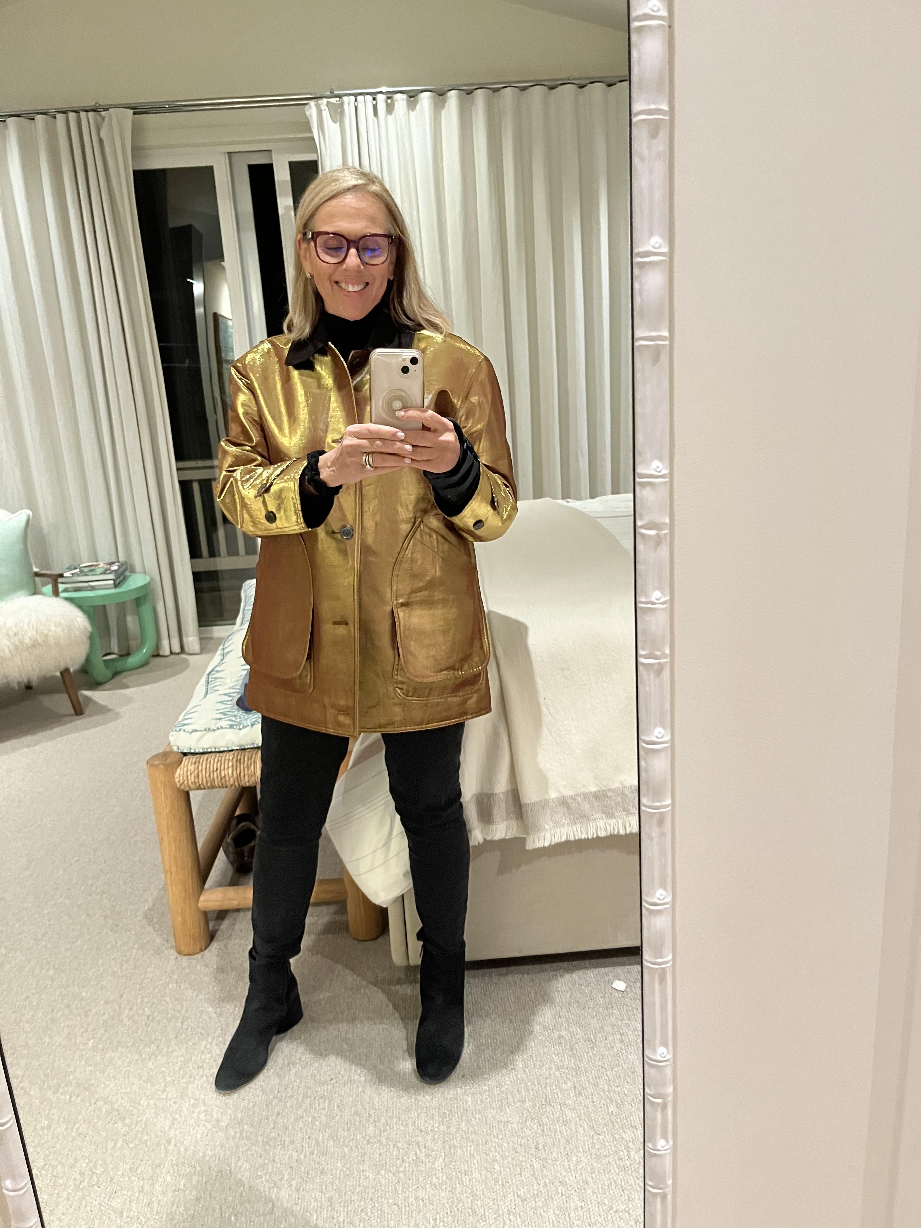 January 22, 2025Love the collaboration with this top fashion designer and J.Crew and especially the gold barn jacket. I wore it out for sushi and got tons of compliments. I ordered the small and it fits as if it was made for me. It’s extremely stylish and I don’t usually love the Lurex fabric but it is really pretty