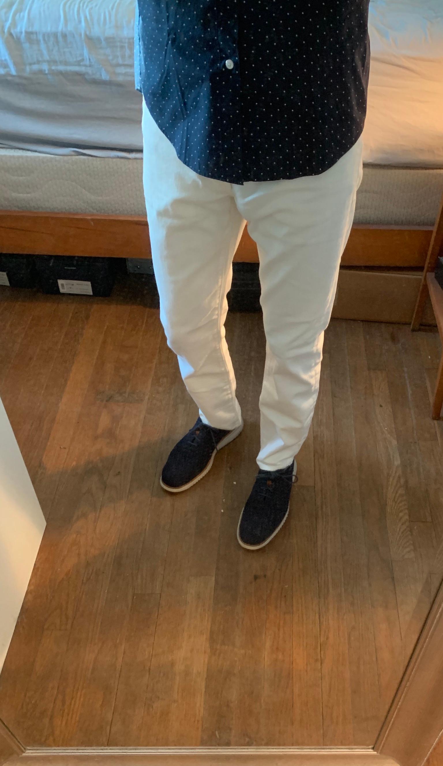 July 22, 2019These are the best white jeans I found, and I looked at several pairs. The fit is just right, close fitting, but not skin tight. I believe JCrew has lengthened the rise of their jeans since I last bought a pair and it is a welcome change. Better look and feel. The Japanese denim is a substantial weight, although apparently not selvedge denim. To me, the best thing about these jeans is the off white, slightly cream color. A more subtle and nuanced look than bright white.And no worry about see-through. I am 5’11’’, 180 pounds and 34x32 is a perfect fit. Great white jeans!