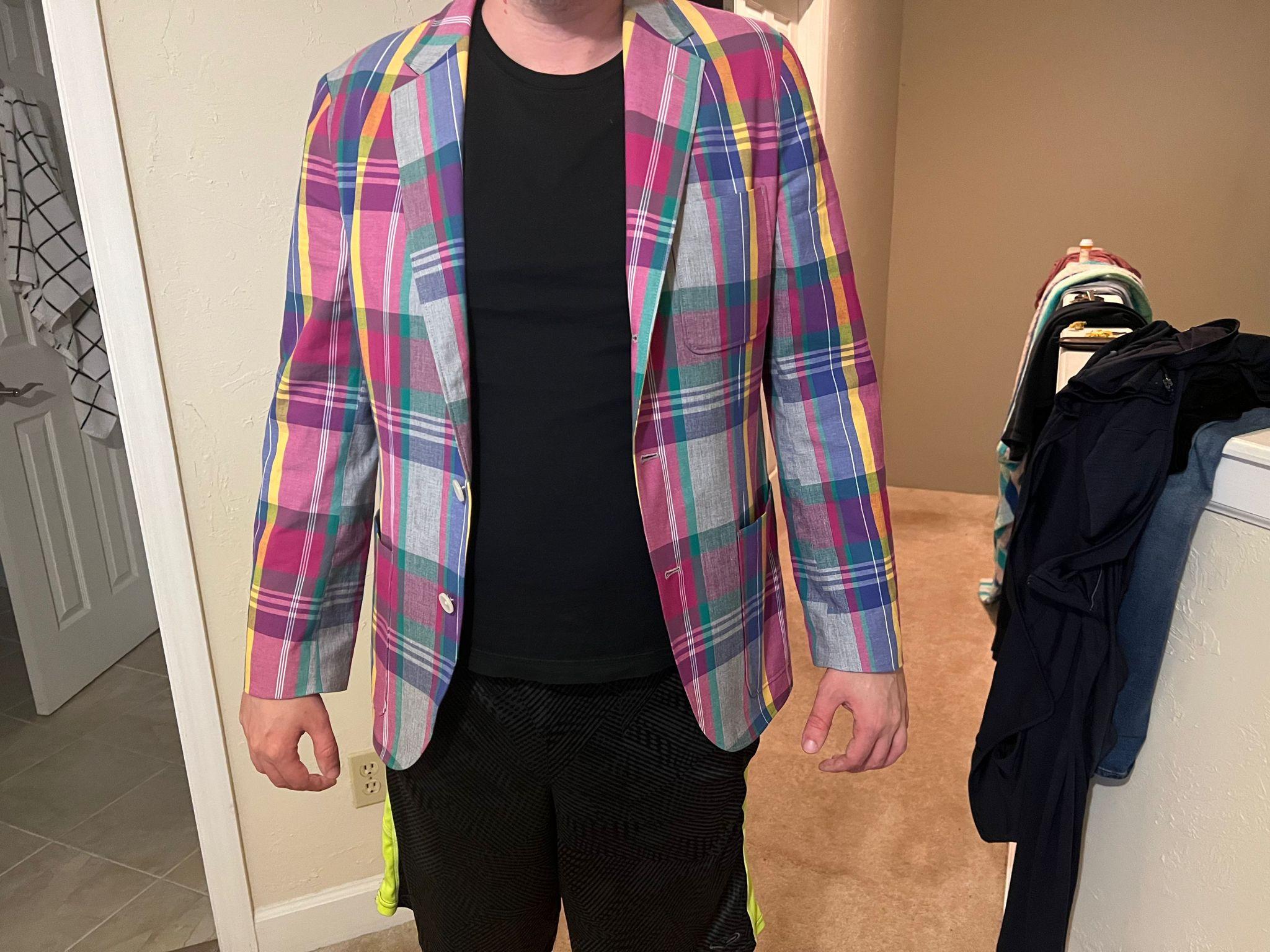 July 26, 2023As many others stated, this is a gorgeous blazer of excellent quality in a lovely madras. Colors are true to photos. As recommended by other reviewers, I purchased larger than my regular size (36/38 slim to 40) and also cannot wear buttoned. I am a woman but own many men's "slim fit" blazers from various designers as I love the quality, details, fabrics and length of men's styles. Never encountered this issue. [I'm grateful a slim style is offered as not all men are wide - nor am I!] Still, it seems something is off with this cut? Everything is now oversized (with upsize) except the fit across the ribcage/back. I can only wear open. Still, it's pretty and unique.