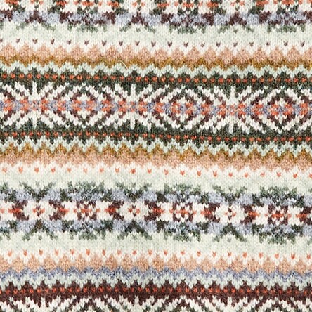 This crewneck is knit in a warm wool blend with an eye-catching Fair Isle pattern, named after one of the Shetland Islands.