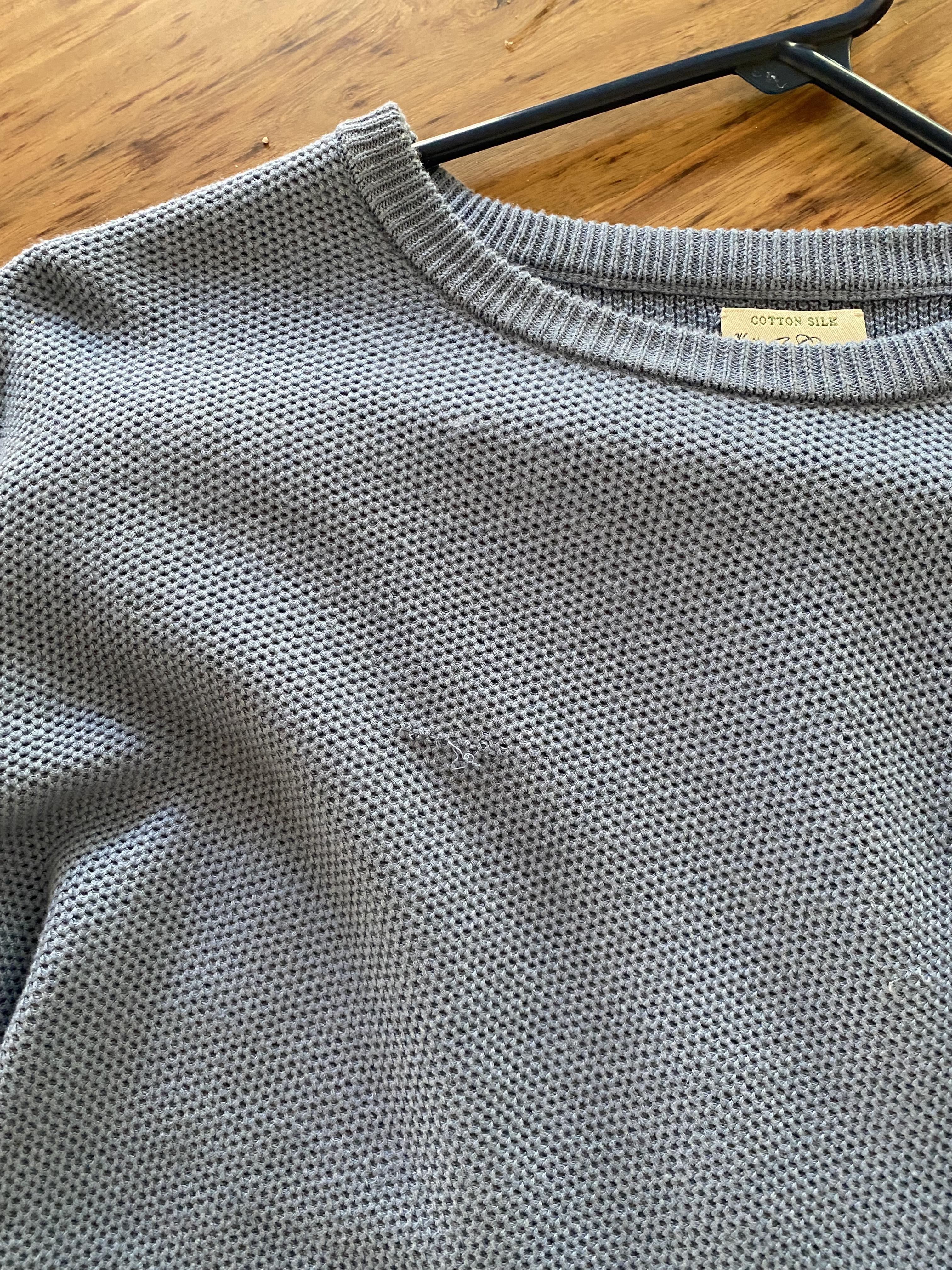 June 13, 2022The cotton has come loose already in two places on the front of the sweater after one use. I tried it on and the defects were pointed out to me by the first person I saw.