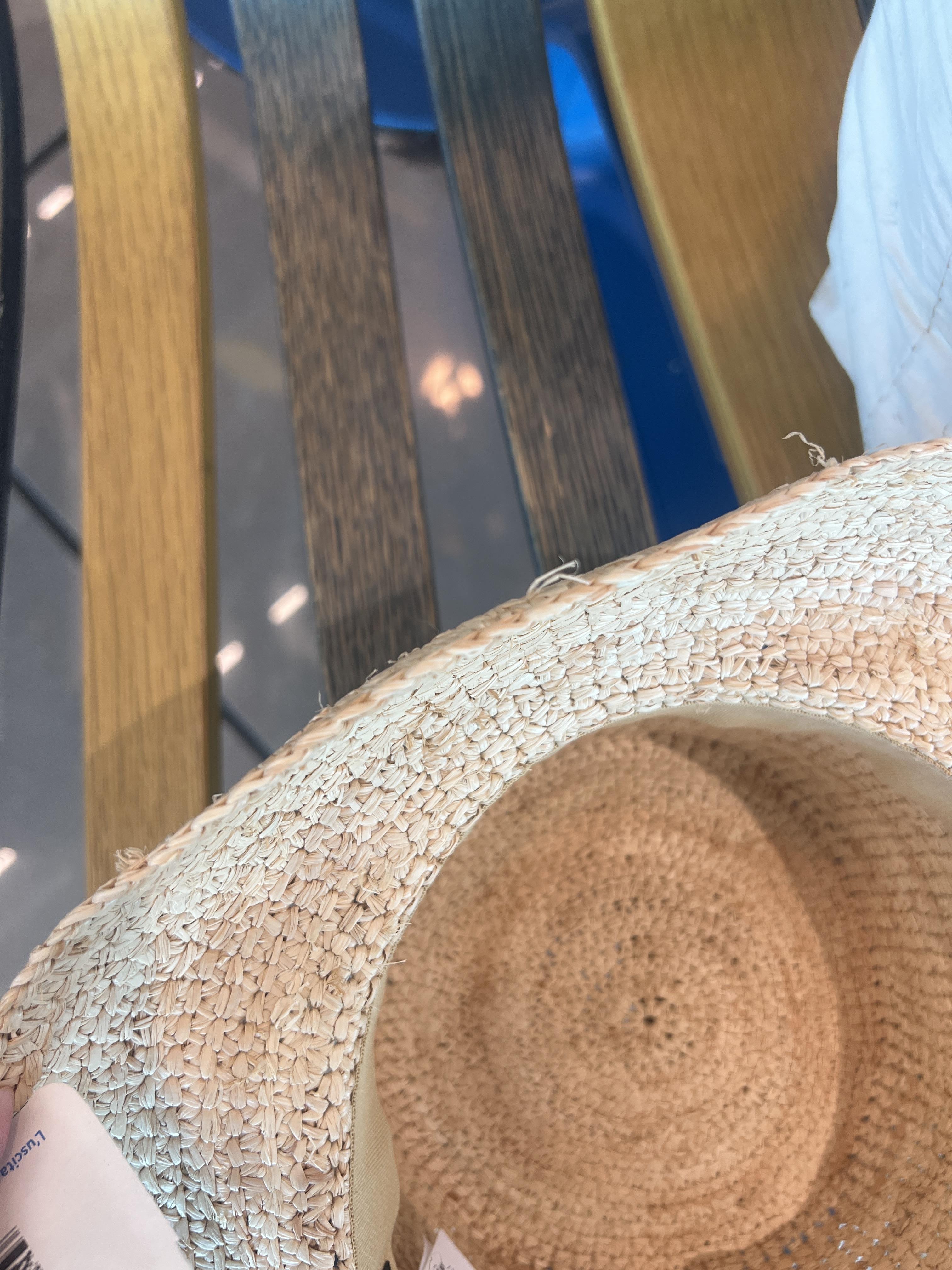 from decades past in warm-weather raffia with an even wider brim for extra sun coverage. Bonus: It bounces back easily after a trip in your suitcase.