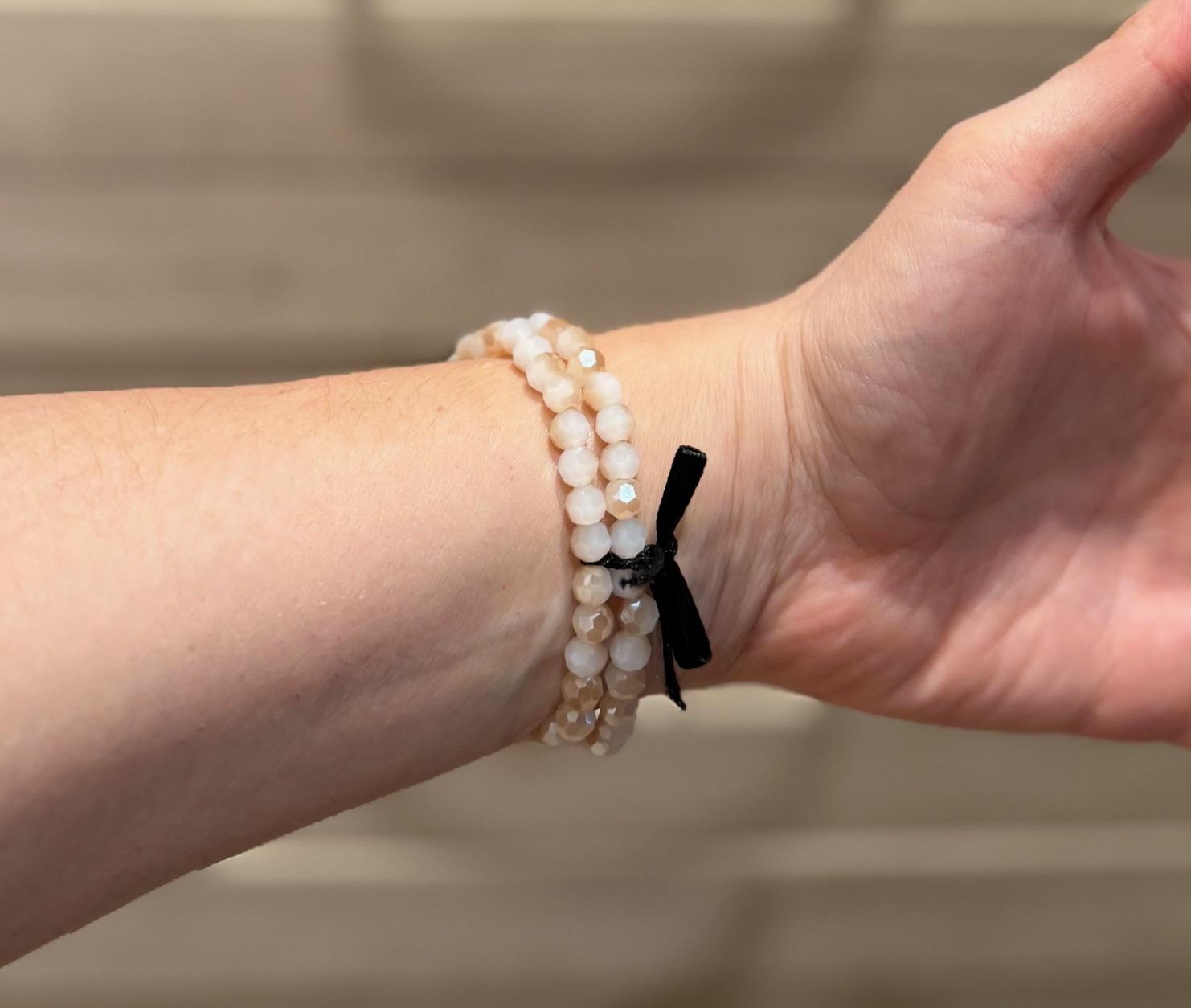 November 16, 2025I love these bracelets. They are just a little sparkly, but overall subtle and neutral. I have the white set, and also a light blue set, so some options for mixing and matching. Very fun for any kind of outfit.