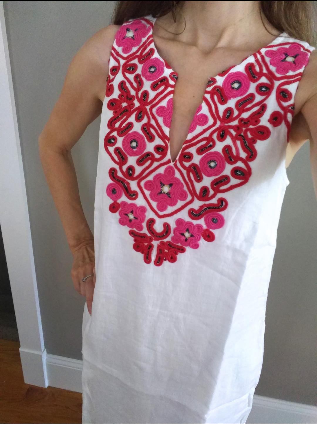 September 4, 2020First time I washed this dress the red embroidery faded all over the white linen and ruined the dress. I washed on gentle in cold as suggested. The dress fit very cute but I would have liked to wear more than once.