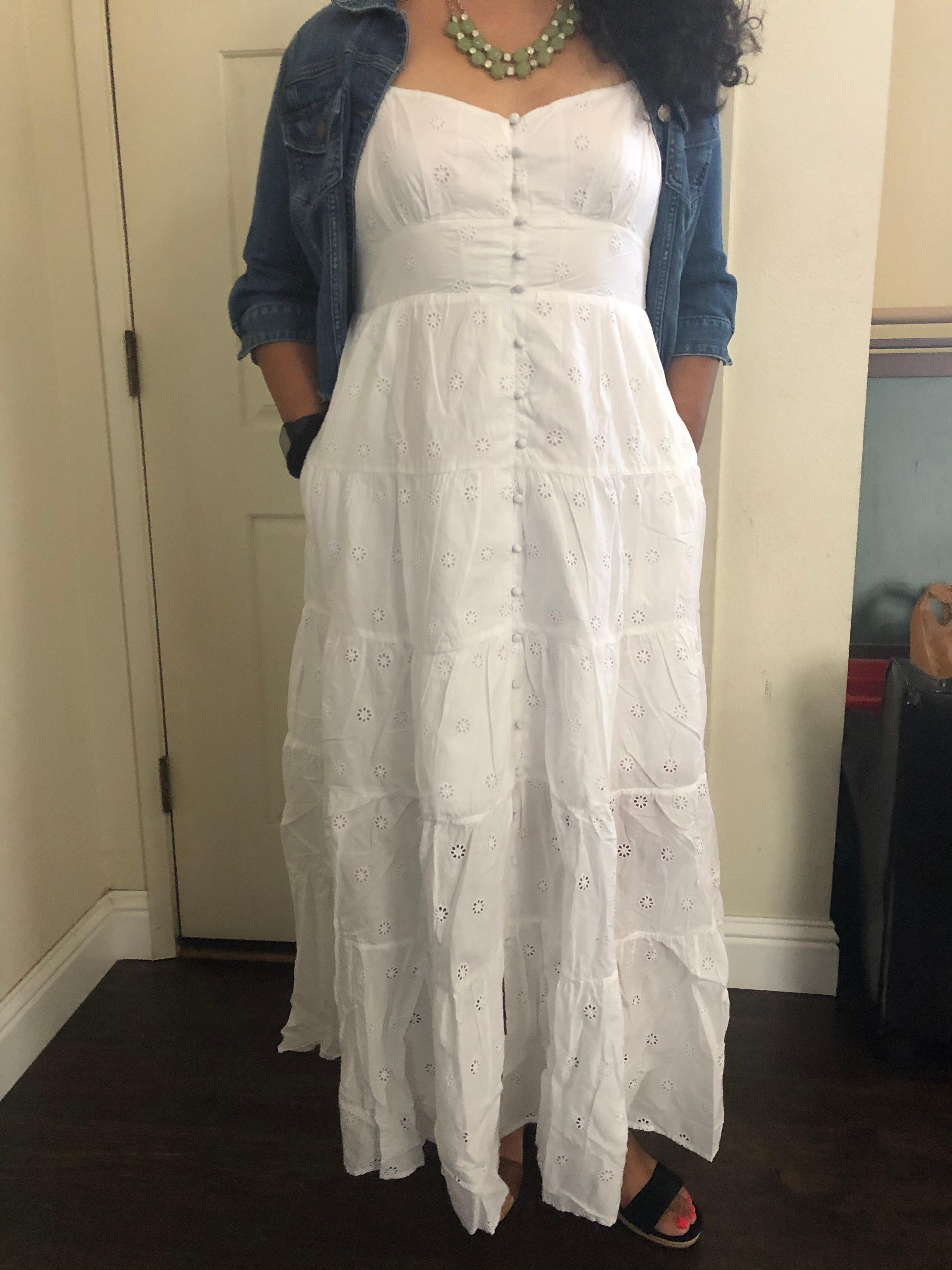 August 26, 2020This dress is Sooooo beautiful! I knew I would love it, fitted around the bust and waist, as I'm small on top, 34B, and like my clothes without all that unnecessary fabric, that is present on almost all J.Crew dresses this year. So, I ended up with the 0, and is spot on and sexy! Good thing..is partially lined to the knee...thank you J.Crew for doing this, as again, we don't want tons of fabric weighing us down. Bad thing...the straps are adjustable...but...ONLY TO MAKE SHORTER, NOT LONGER, which is a problem for me at 5'8, and long torso. Bummer, back to alterations! Overall, I love this gorgeous white cotton dress...my husband does too! Big Win!