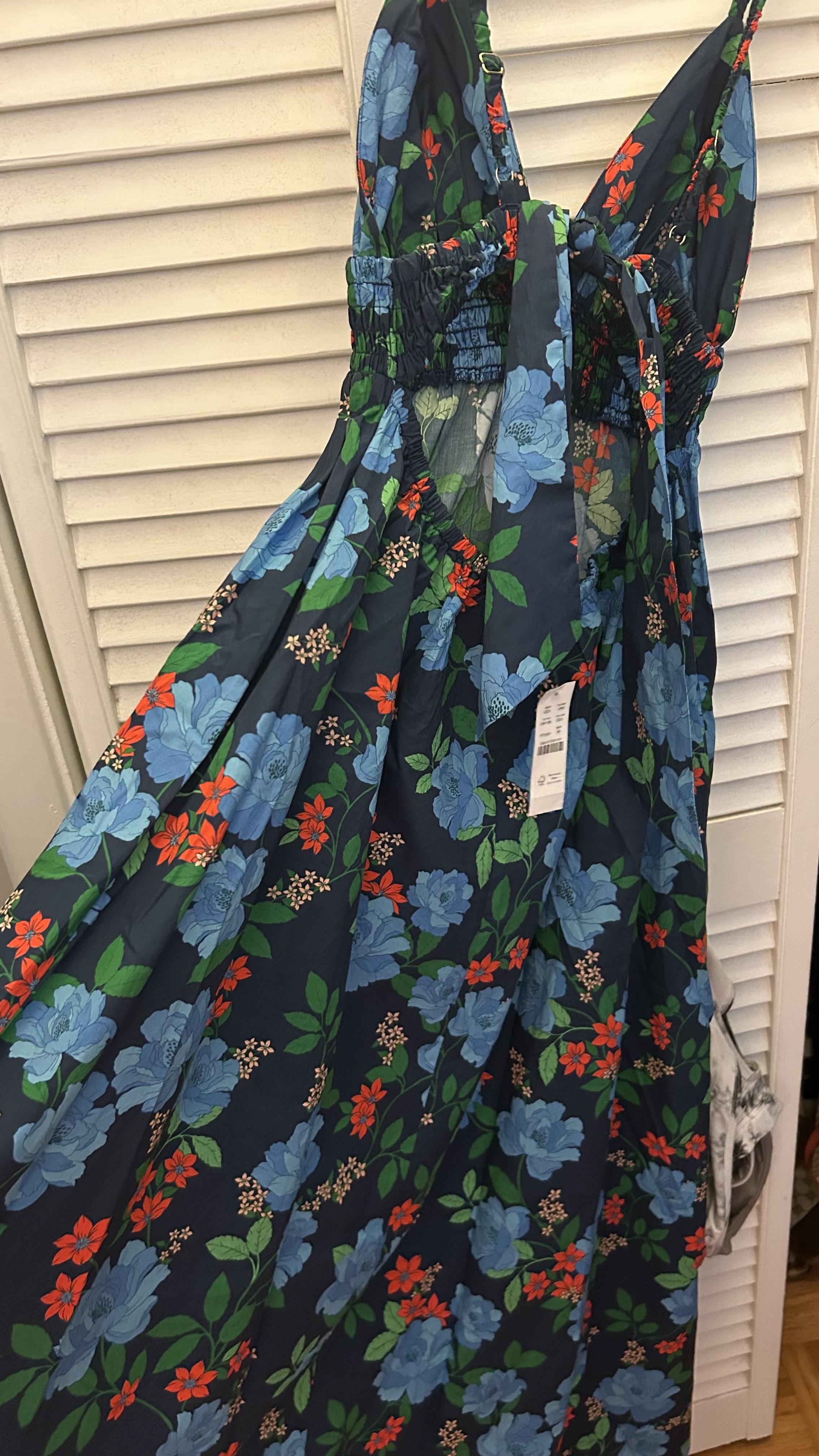 April 6, 2024The colors of this fabric are stunning. Even more so in person! The silhouette is nice too. I could have sized down to the Medium but was scared to because it was final sale. The skirt is thin, just one layer of fabric and there are no pockets but still, this will be a casual stunner for summer.
