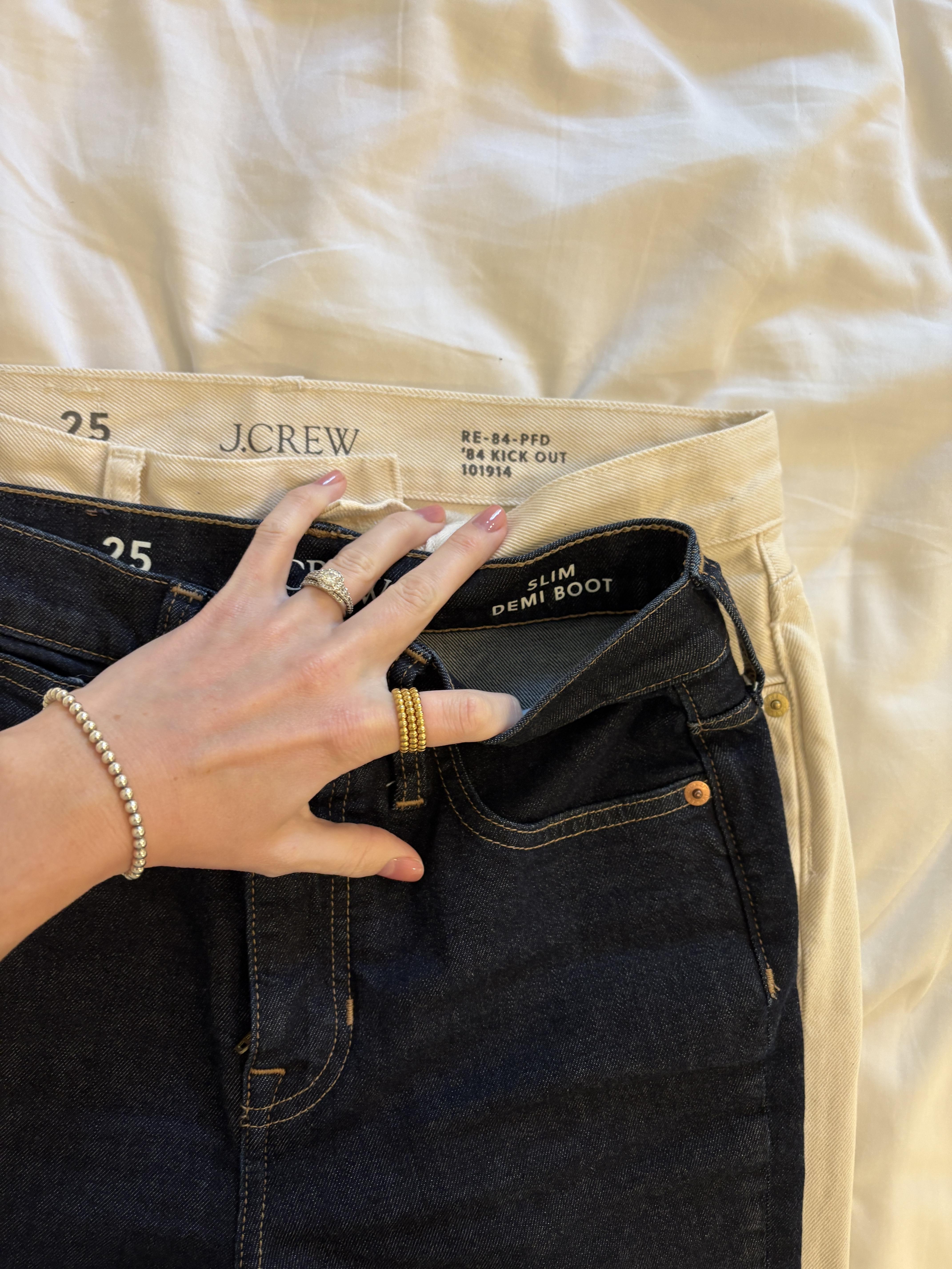 October 3, 2025I compared these to my other slimmer fit j.crew jeans and they’re at least a size too big (see pictures) theyre not as straight in the hips as other j.crew jeans which may be good depending on if you’re curvy.