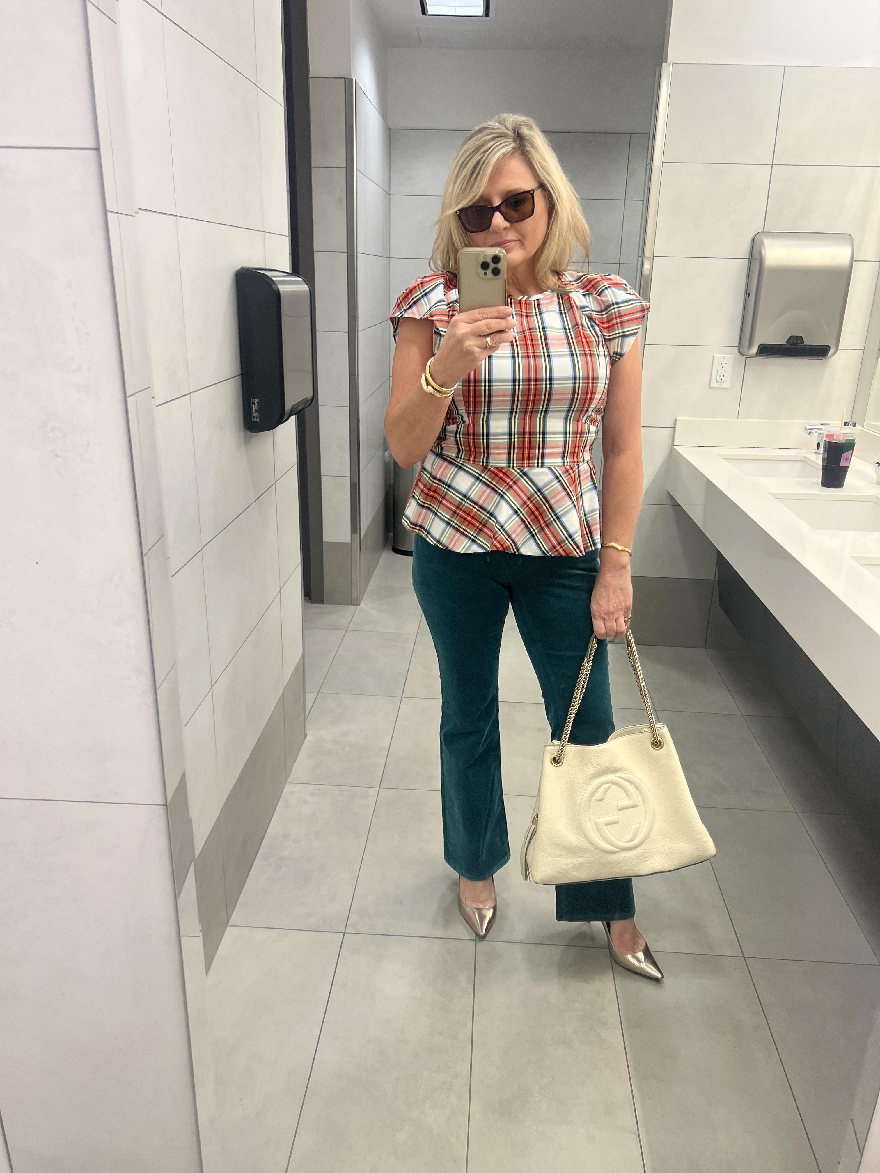 March 6, 2024Who doesn't love Christmas Tartan?! From the gathered cap-sleeve, to the uber feminine ...this top has the sweetest details. It is a structured shirt with little give in the fabric. My true size fit but was snug. I would have sized up for more room in my ribcage had it not been a last-minute purchase arriving the day before our office holiday party. I styled it with green boot cut corduroys and gold stilettos. I also purchased the matching skirt and wore them together to church on Christmas with black tights, tall black boots and my white Parke bi-stretch cotton blazer. It is a classic addition to my holiday-wear that I have worn to several events over the last 2 years and foresee many years to come!