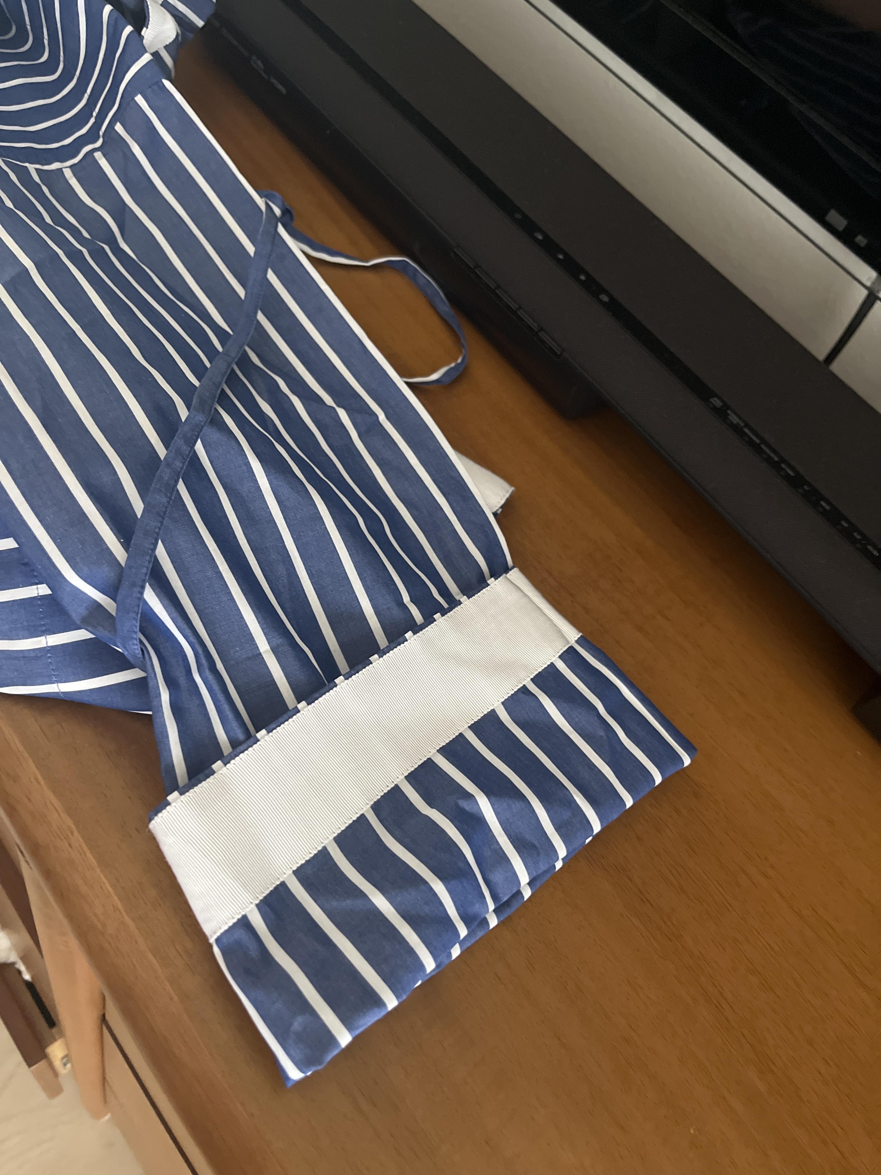 August 18, 2025I purchased this in an XS based on reviews and found the.bust a bit tight on me- still wearable, but since the overall vibe of this piece is relaxed, I’m gifting this to my mom. I do love the fabric and styling so I purchased one in S for myself! Nice lightweight poplin and I like the fact that when you roll up the sleeves (I have short arms) the grograin ribbon sewn on the inside now is viable on the cuff- I think it looks great and a nice testament to the overall design of this shirt.