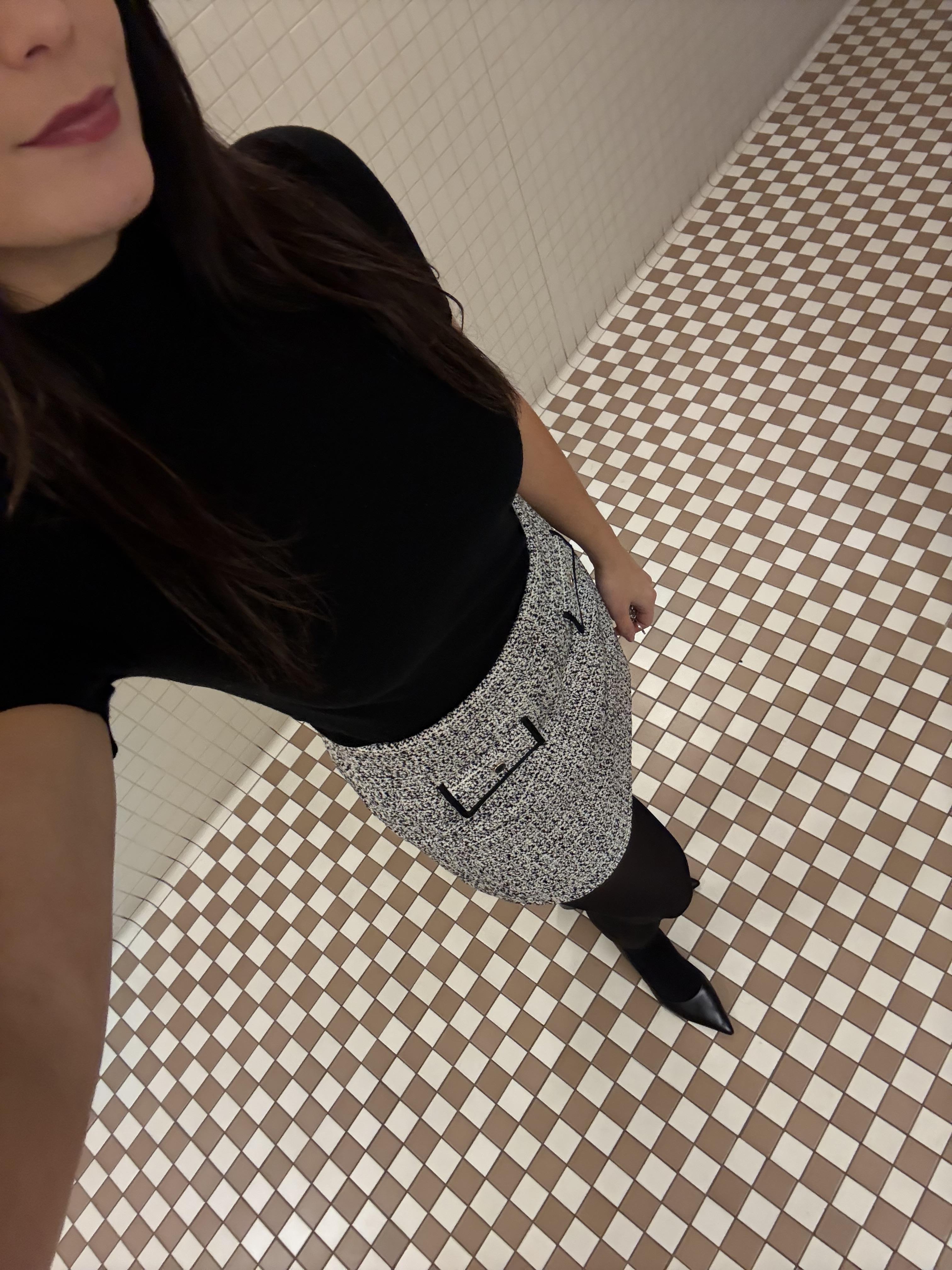 December 26, 2025This skirt makes me feel so elegant! I’m 5’6” and bought a size 2! The length is proper enough for work. I paired with a black turtle neck, sheer tights, and block heels! Perfect day look for the office!