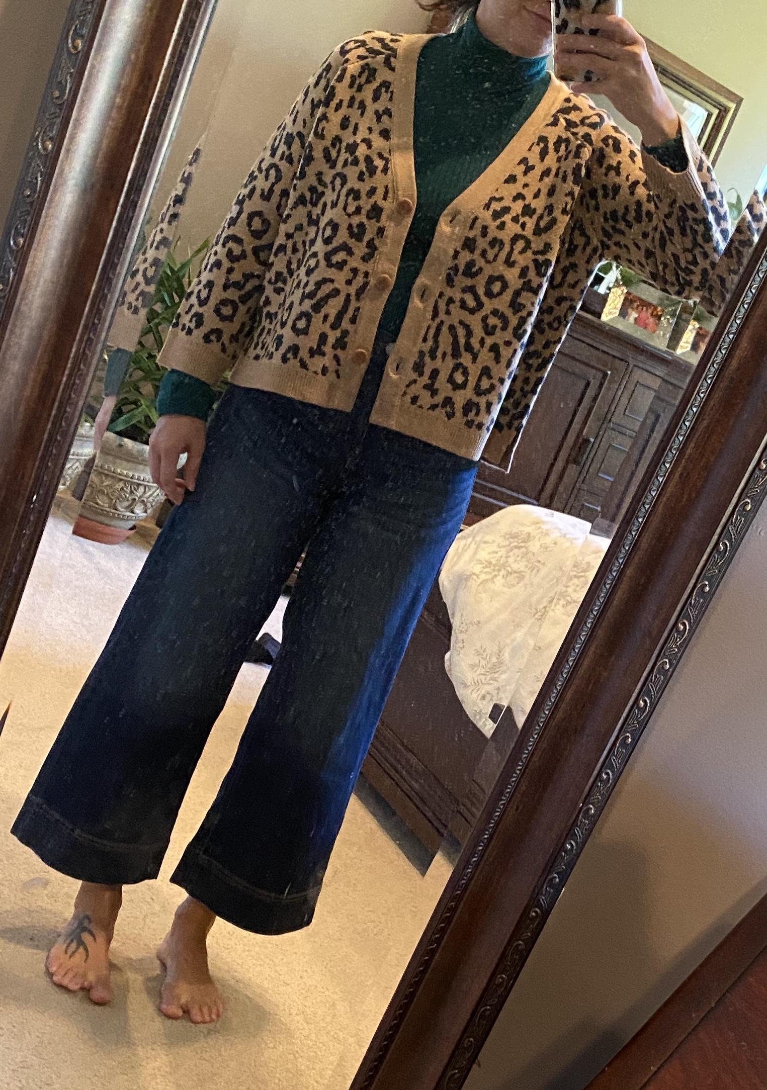 December 1, 2020I've had my eye on this cardigan for a while and was happy when it went on sale and my size was still available. The print is cute, quality is nice but I agree with the other reviewers the cardigan is short and boxy. I'm happy with the purchase because I plan to layer it with the boyfriend crewneck sweater in leopard-print; it looks like a cute sweater set.
