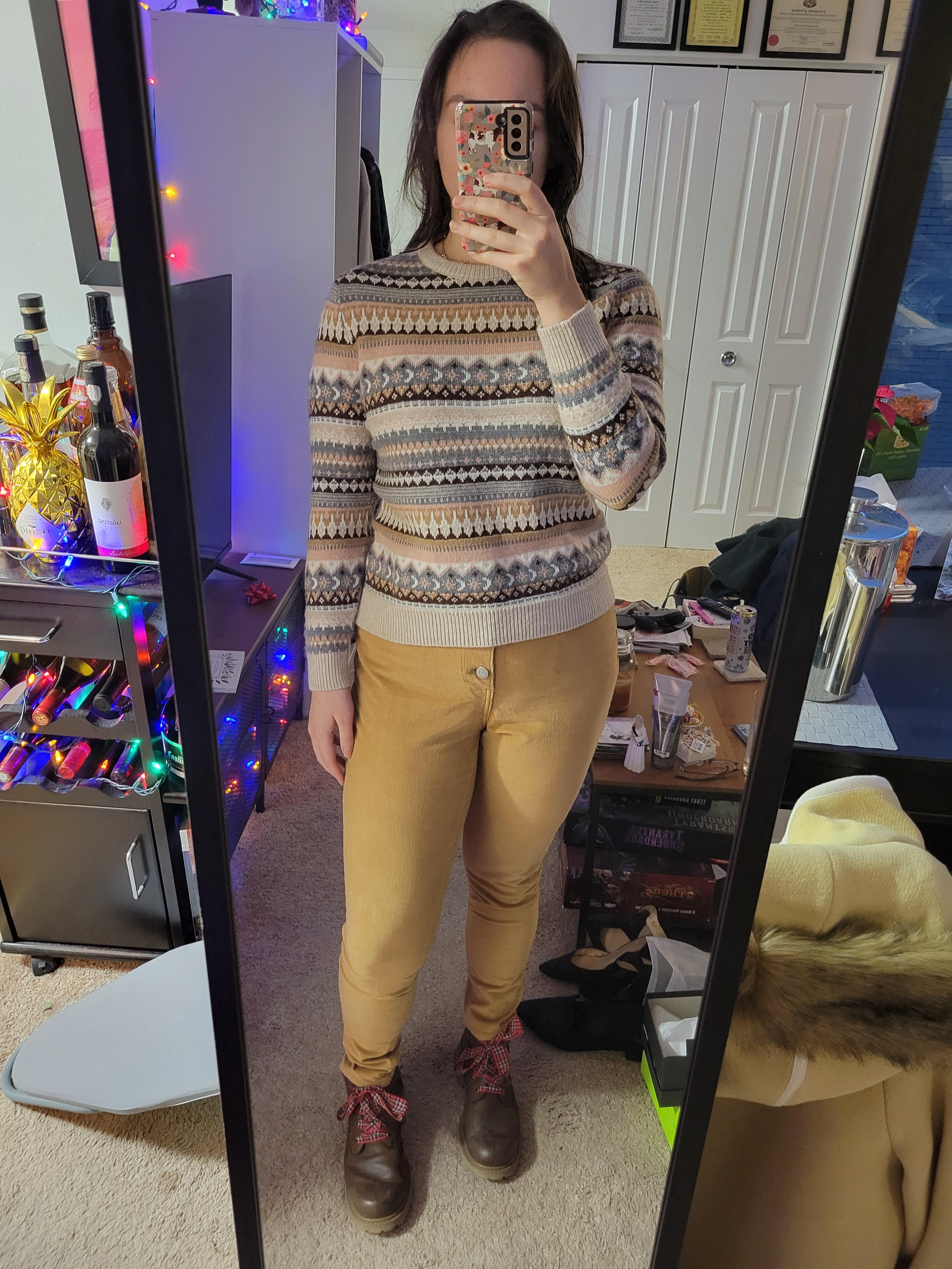 slightly shrunken fit and a stripe-y Fair Isle knit.