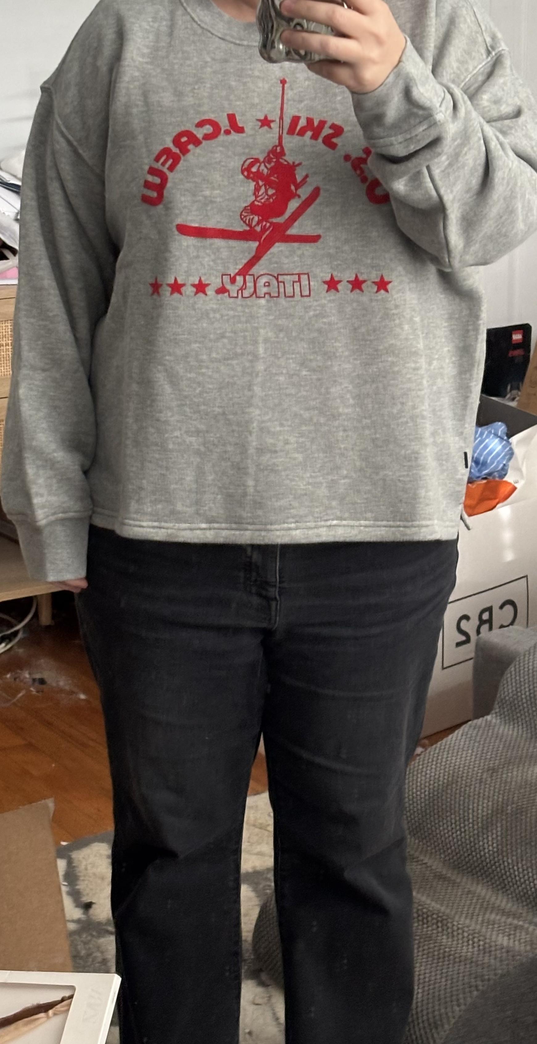 2 weeks agoWore this comfy sweatshirt with white jeans and Uggs for an Apres Ski party and it was a hit. Looks great with jeans. Not like your usual sweatshirt as it fits like a shirt but I did a front tuck and was happy with the fit.
