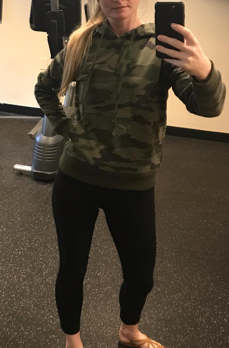 October 13, 2018I love this camouflage sweatshirt. It’s the perfect thickness and it’s a flattering cut. It is shorter than I had expected but I’m petite so it fits fine.