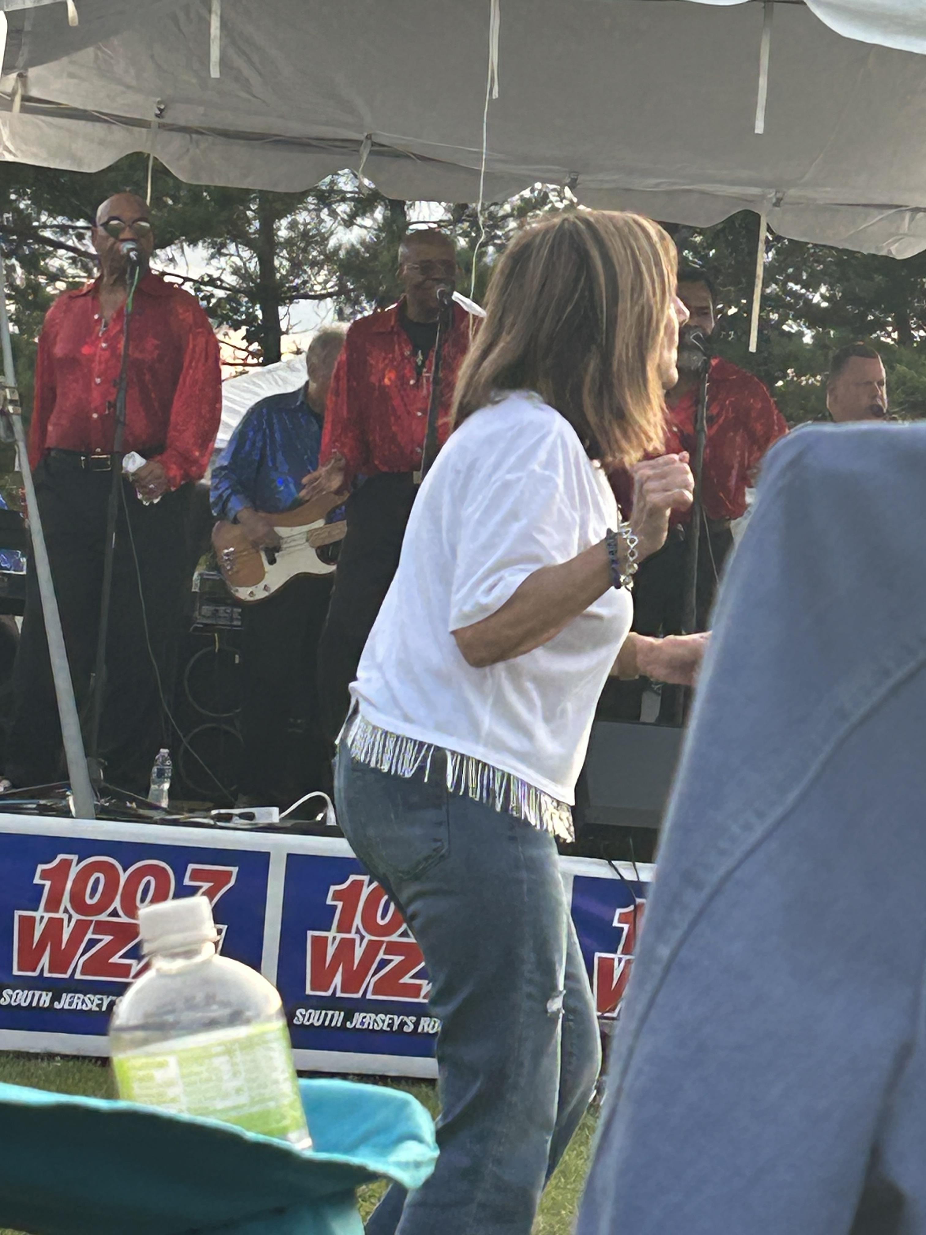 August 24, 2023Wore this adorable tee with jeans to an outdoor concert. It made me smile. I danced all night as my shimmer fringe was shaking to the music! I did size down to an X small because I didn’t want a boxy fit.