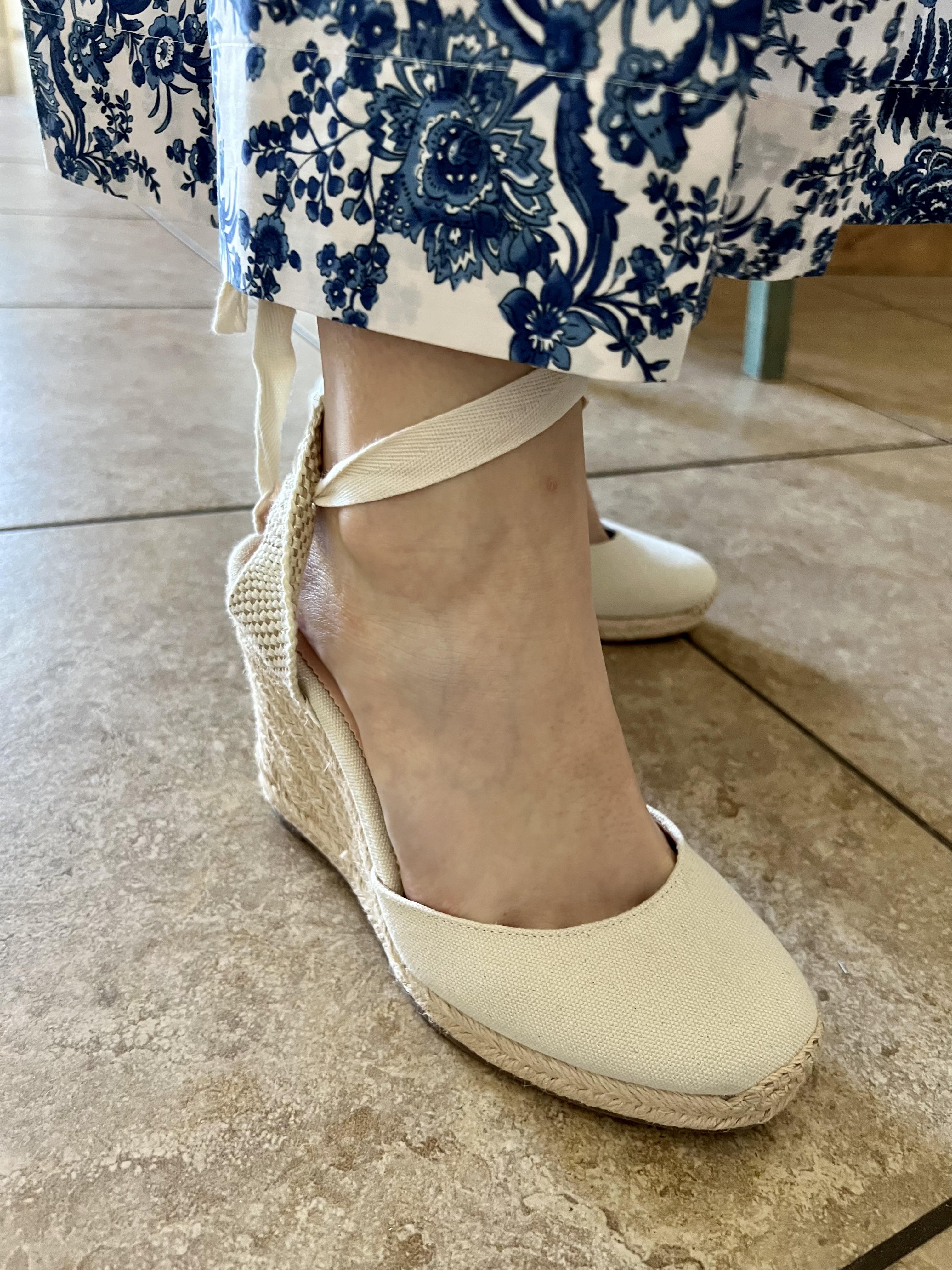 Many customers love the shoes for their summery chic style and versatile look that works well with everything from denim to dresses. The design details, like the stylish ankle tie that adds a playful touch and a boost of height, have won plenty of compliments. Some customers noted mixed sizing feedback and recommended staying with their usual JCrew size or making a slight adjustment for the best fit. Overall, the quality, comfort, and distinctive design make these espadrille wedges a great choice for summer occasions.