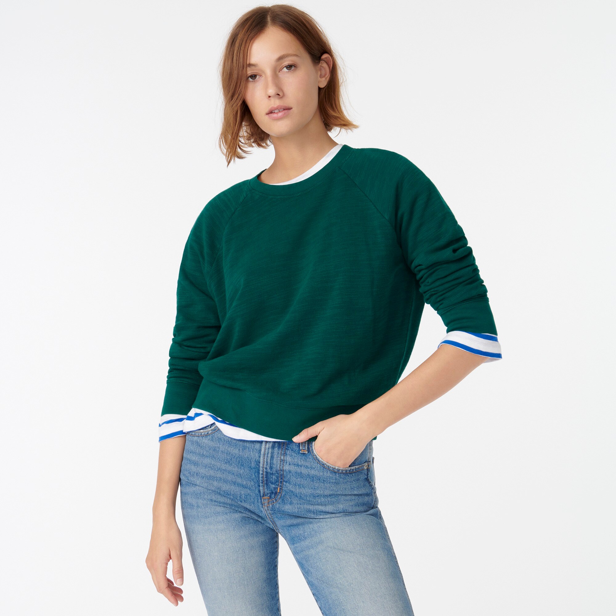 Introducing our new weekend essentials in vintage cotton terry. These off-duty styles are just the right weight—not too heavy, not too light—with subtle variations in texture to give a worn-forever look from the get-go. We specially wash the cotton to achieve the perfect softness so they feel like you've had them forever, too. This easy pullover has a relaxed fit, raglan sleeves and a classic crewneck, plus, it's garment-dyed to give it a unique depth of color. Pair with our matching joggers to go full-on comfy chic.
